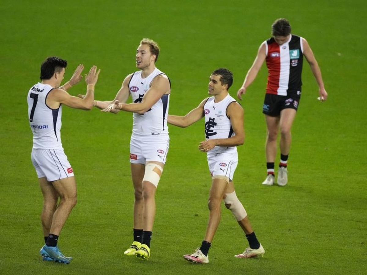 But the Saints capitulated after the first break, with Carlton slamming through nine of the next 12 goals in a display of sharp-shooting to blow the lead out to as much as 50 points during the third quarter.
