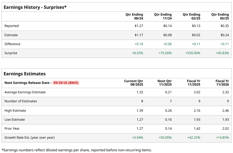 Miami, Florida-based Carnival Corporation & plc (CCL) is a cruise company that provides leisure travel services. Valued at $35.5 billion by market cap, the company offers cruise vacations specializing in ocean-based vacations, offering a mix of luxury, premium, and budget-friendly cruise experiences. The cruise giant is expected to announce its fiscal third-quarter earnings for 2025 before the market opens on Monday, Sep. 29.