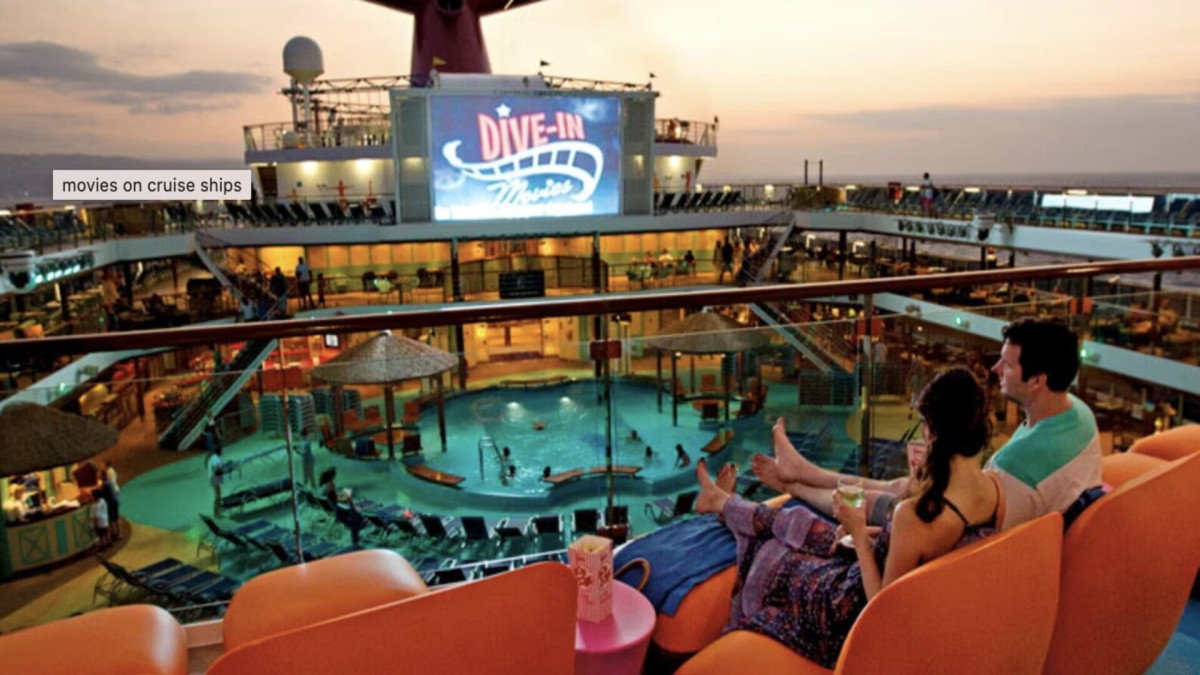 Many cruise ships have large movie screens on the pool deck. That's true of most Carnival ships and Royal Caribbean ships smaller than Oasis-class.