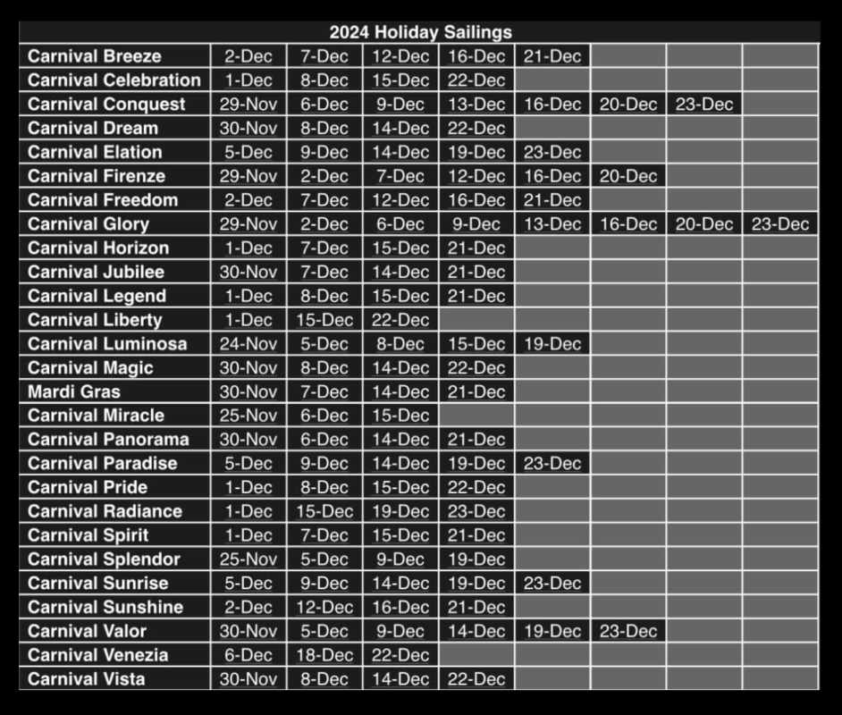 Some Carnival customers book cruises specifically because they want to celebrate Christmas, making this list extra important as the holiday season approaches.