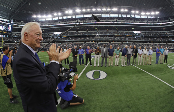 A line has been drawn in the sand in Dallas. But it's not as risque as one might think. To date, there hasn't been a single Dallas Cowboy to kneel during the national anthem.