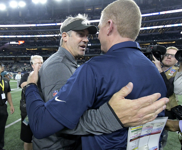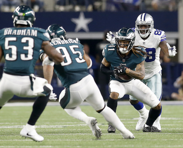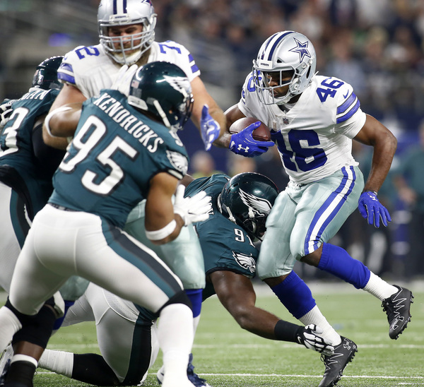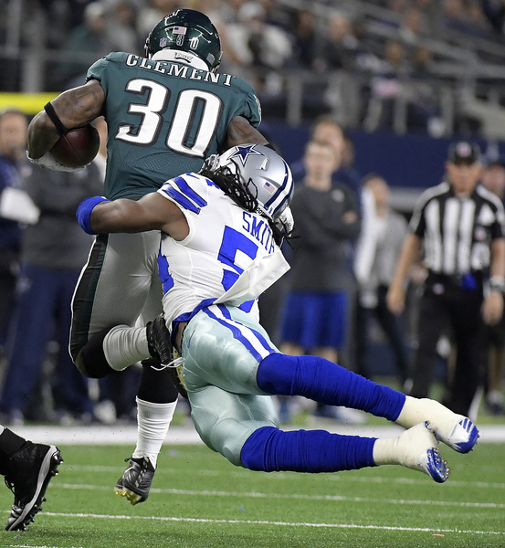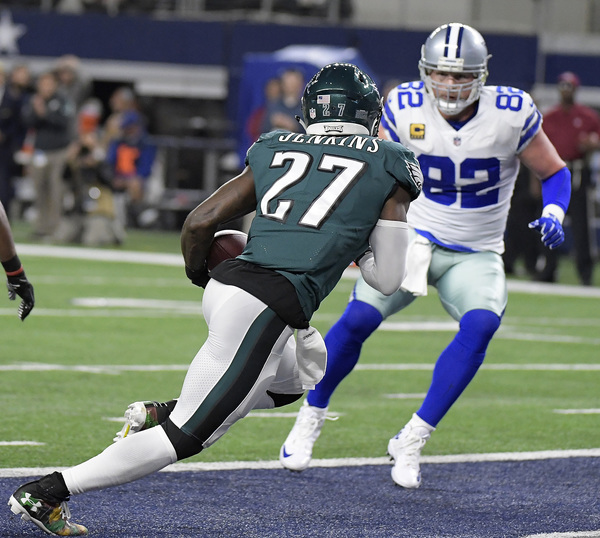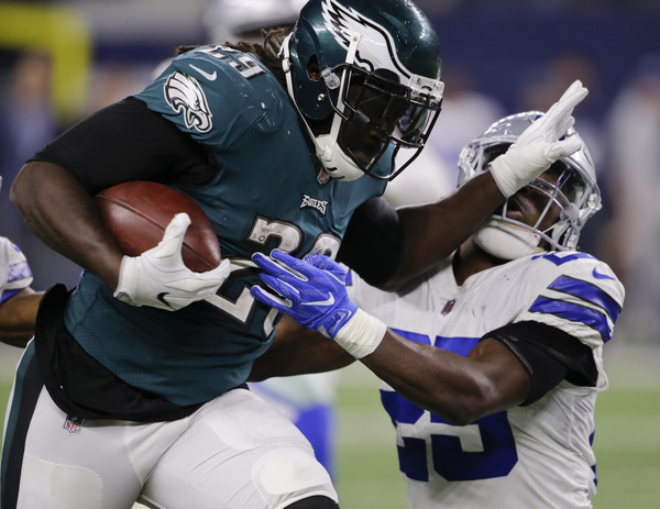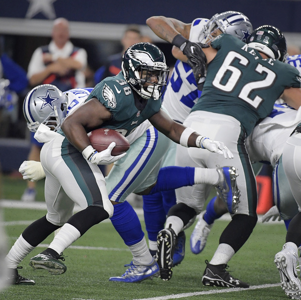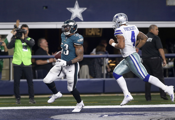 When the Cowboys tried pinning the Eagles on a fourth down at the Eagles' 39-yard line, the offense quickly changed fields. Jay Ajayi rushed for 71 yards around left tackle Halapoulivaati Vaitai for a career-long run in front of family and friends in his hometown. Ajayi's role continued to grow in his second game with the Eagles, but Pederson still involved all the active running backs. The Cowboys needed to stop the Eagles on third down in the red zone to force the Eagles into a difficult fourth down without injured kicker Elliott, but few teams have been able to stop Wentz on third down this year. He found Torrey Smith for an 11-yard touchdown to build a 23-8 lead.