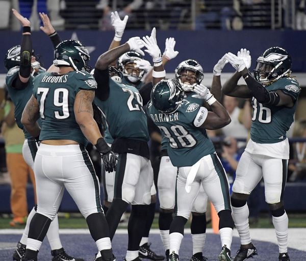 The Eagles turned a 9-7 halftime deficit into a rout during the third quarter when coach Doug Pederson turned to the running game to bully the Cowboys defense and Wentz made key conversions that have become standard this season. Jim Schwartz's defense dominated Dallas, with four forced turnovers and four sacks.