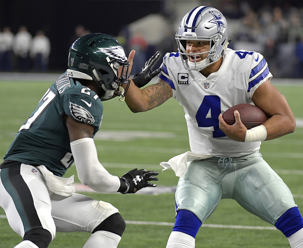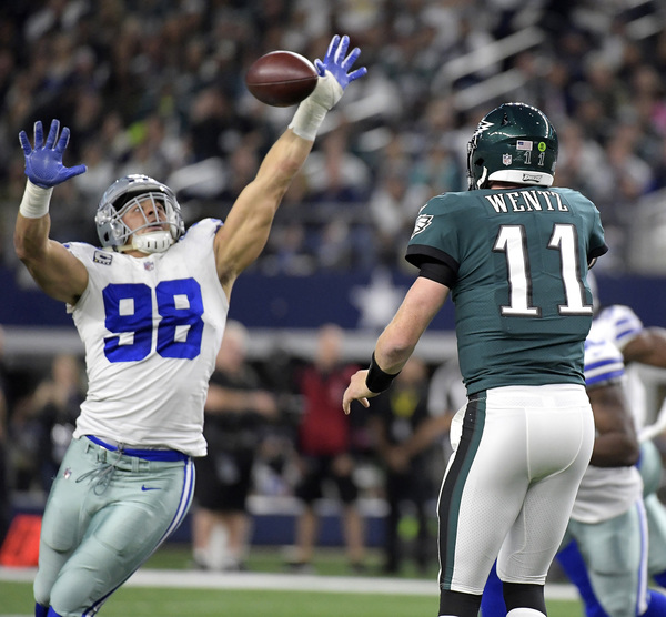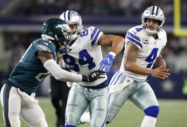 Wentz went 14 of 27 for 168 yards and two touchdowns while Prescott was held to 145 yards and threw a career-high three interceptions. The Eagles topped 200 yards on the ground, and the defense embarrassed the Cowboys to drop them to 5-5.