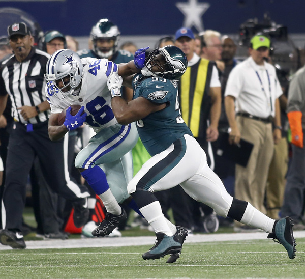 The defense forced the Cowboys to settle for a field goal after the long kickoff return, a big stop for an Eagles defense that didn't allow a Cowboys touchdown all game.