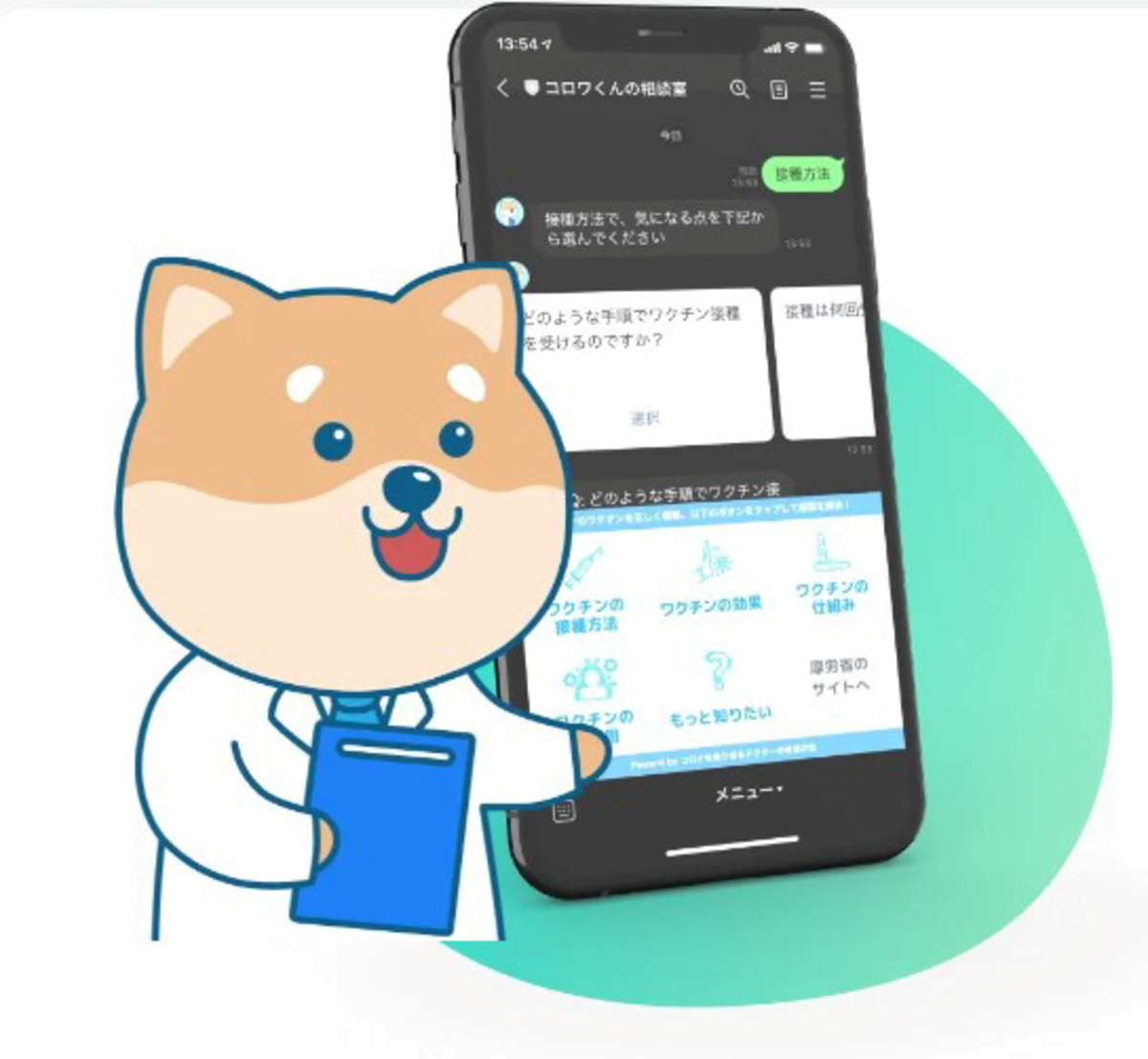 The dog, a Shiba-inu known as Corowa-kun - from the Japanese words for "coronavirus" and "vaccine" - wears a white doctor's coat and the app named for him gives automated answers to medical questions.