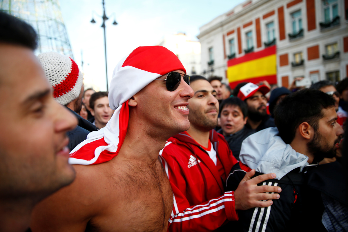 Soccer Football - River Plate fans ahead of the Copa Libertadores match between River Plate and Boca Juniors - Puerta del Sol Square, Madrid, Spain - December 8, 2018 River Plate fans ahead of the match REUTERS/Javier Barbancho