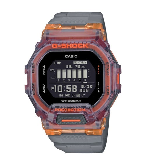 They both have standard digital watch features such as an alarm, stopwatch, countdown timer, and a backlight. The GBD200 includes a world timer and vibration alerts for phone notifications. Additionally, the semi-smart watches cleverly hide a step tracking sensor and accelerometer for tracking runs. The watches connect to phones over Bluetooth, logging and analyzing data via the G-Shock Move app. While the watches don’t have onboard GPS, you can use your phone’s GPS to track runs, though the watch is supposed to track distance on its own using the accelerometer.
