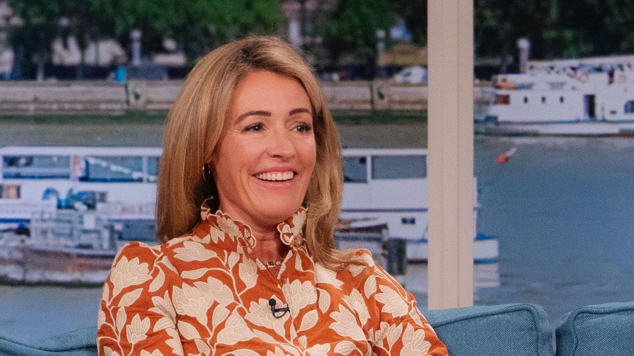 Presenting This Morning on 13 October, she stunned in a pair of white suit trousers, which she styled with Sézane’s ambre shirt to inject some autumnal, terracotta colour. The blouse boasted a simple floral design in ecru, making it the perfect piece to style with white flares, taking a summery style into autumn.