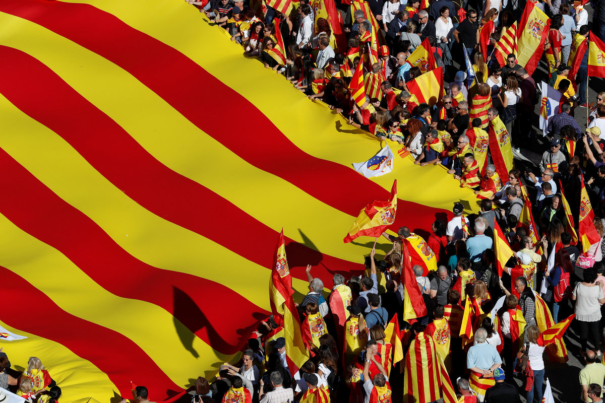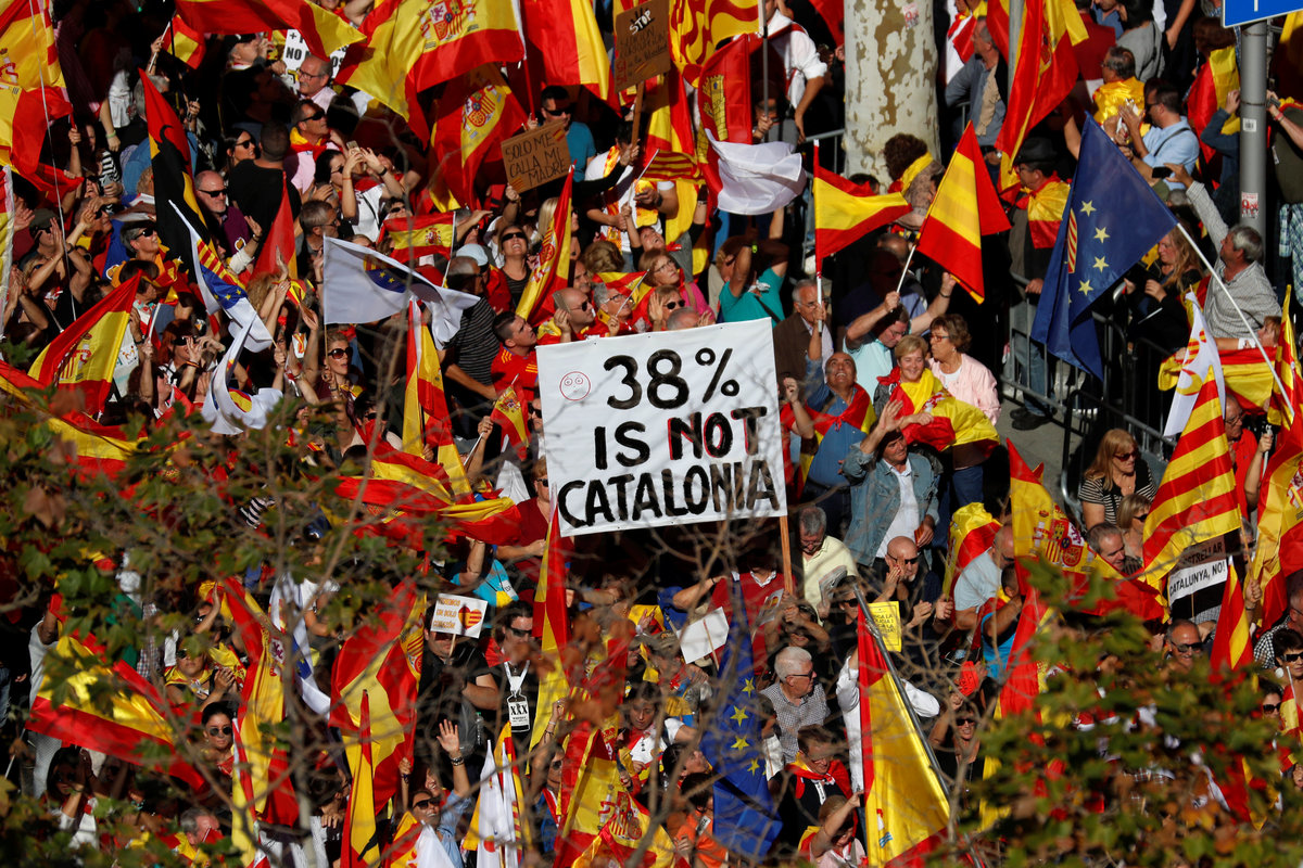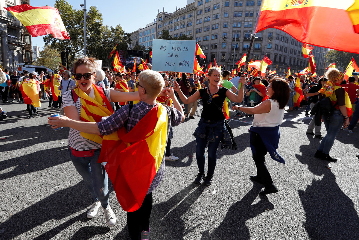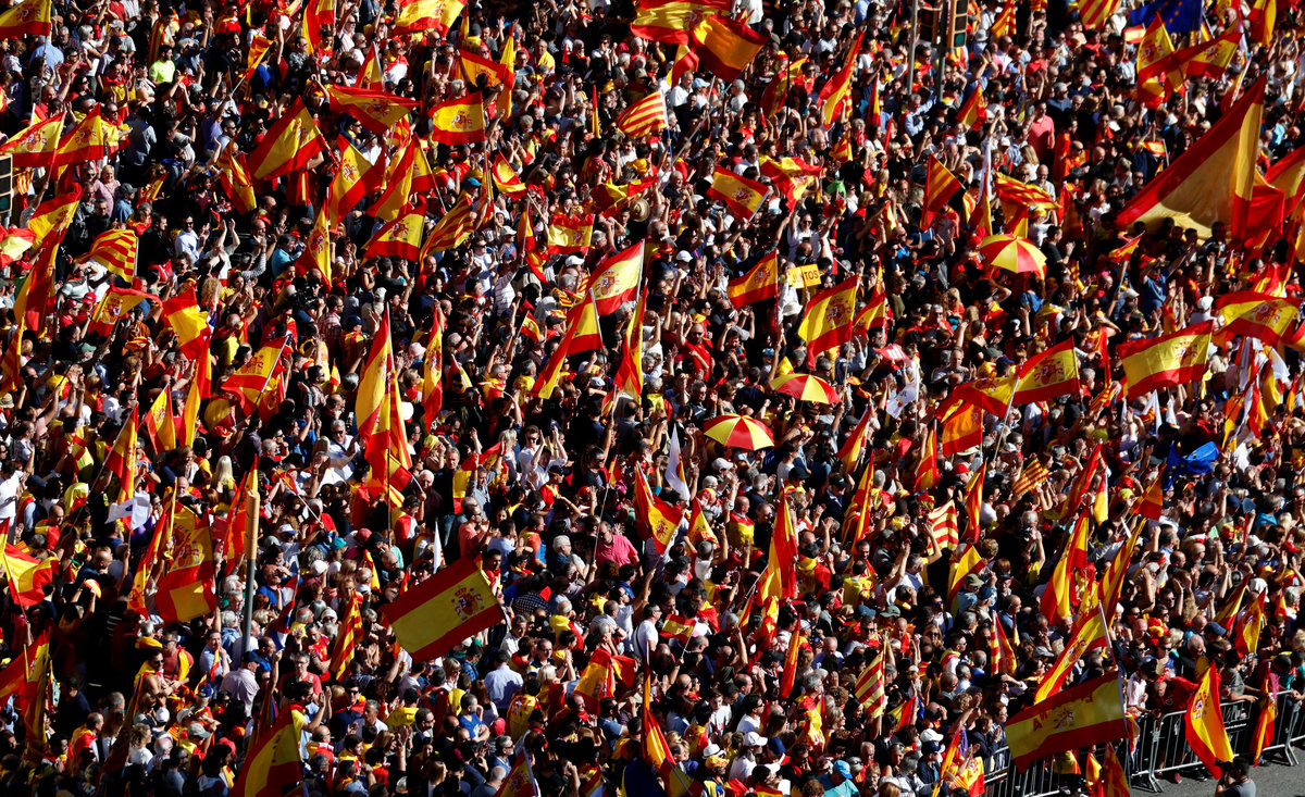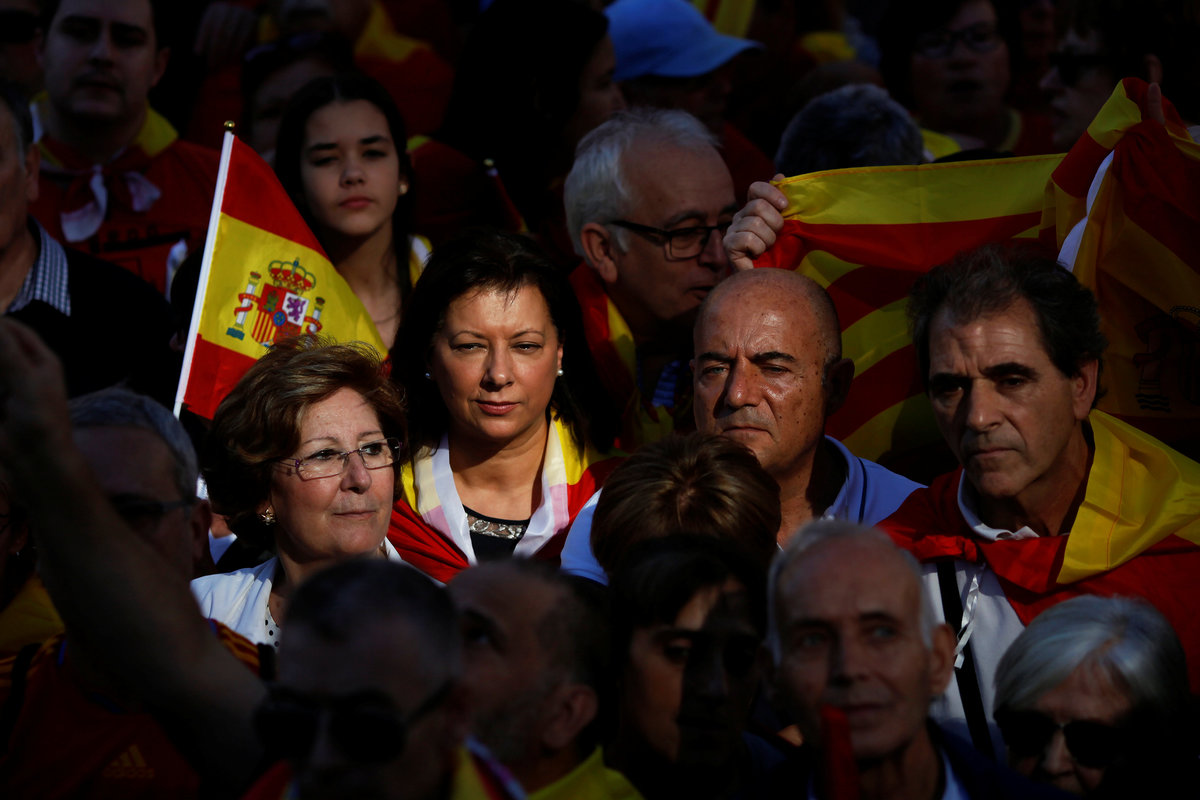 BARCELONA (Reuters) - Hundreds of thousands of supporters of a unified Spain filled Barcelona's streets on Sunday in one of the biggest shows of force yet by the so-called silent majority that has watched as regional political leaders push for Catalan independence.