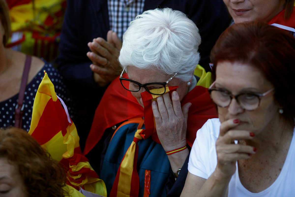 But emotions are running high and the next few days will be tricky for Madrid as it embarks on enforcing direct rule and putting officials in administrative roles. National police were accused of heavy-handedness during the Oct. 1 referendum.