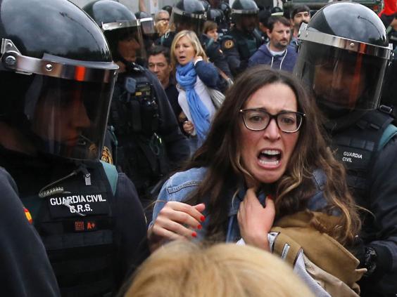 The Spanish Civil Guard was seen hitting people with batons, fired rubber bullets into crowds and forcibly removed would-be voters from polling stations in actions that were condemned internationally but were described by the government as "proportionate".