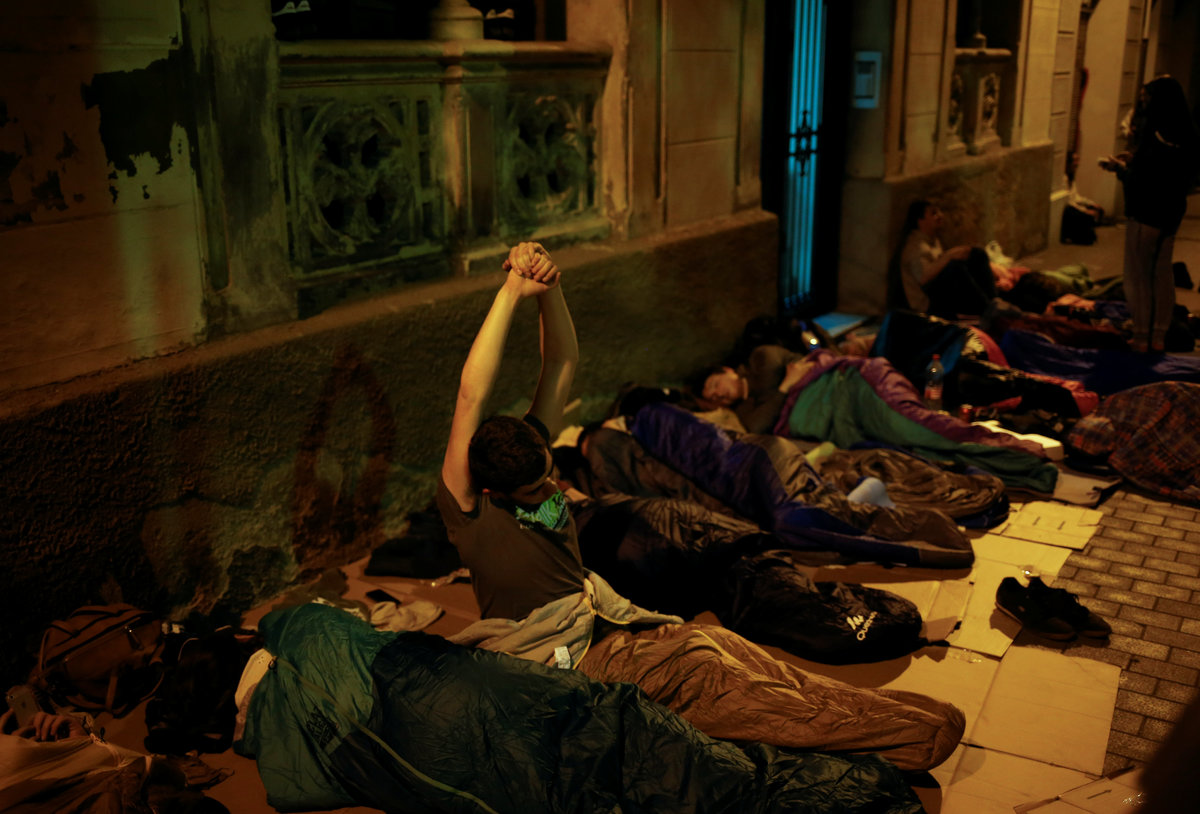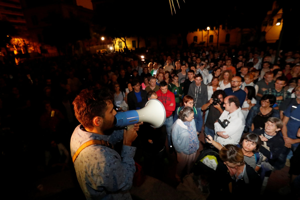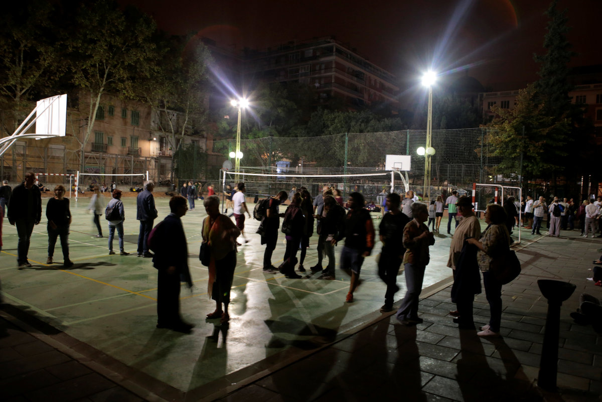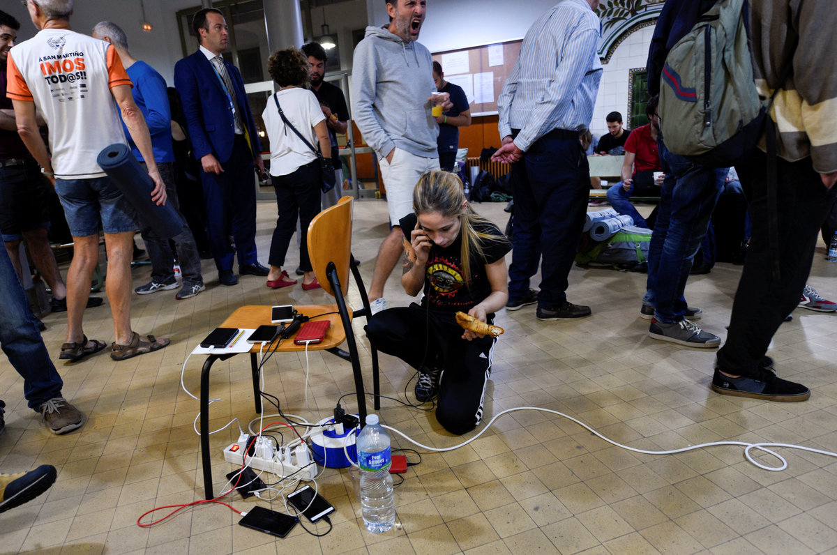 People occupying the Miquel Tarradell high school, which is a polling station for the banned independence referendum, open the door to speak to people outside the school in Barcelona, Spain, October 1, 2017. REUTERS/Eloy AlonsoPeople occupying the Miquel Tarradell high school, which is a polling station for the banned independence referendum, queue for breakfast in Barcelona, Spain, October 1, 2017. REUTERS/Eloy AlonsoA man uses a megaphone as people gather outside industrial school that is a polling station for the banned independence referendum in Barcelona, Spain, October 1, 2017. REUTERS/Yves HermanPeople occupying the Miquel Tarradell high school, which is a polling station for the banned independence referendum, stand by the entrance in Barcelona, Spain, October 1, 2017. REUTERS/Eloy AlonsoPeople stand inside the occupied La Sedeta high school, which is a polling station for the banned independence referendum, in Barcelona, Spain, October 1, 2017. REUTERS/Enrique CalvoPeople move furniture inside an occupied industrial school that is a polling station for the banned independence referendum in Barcelona, Spain, October 1, 2017. REUTERS/Yves HermanPeople sleep outside a polling station for the banned independence referendum in Barcelona, Spain, October 1, 2017. REUTERS/Jon NazcaPeople set up tables inside an occupied industrial school that is a polling station for the banned independence referendum in Barcelona, Spain, October 1, 2017. REUTERS/Yves HermanPeople prepare breakfast inside an occupied industrial school that is a polling station for the banned independence referendum in Barcelona, Spain, October 1, 2017. REUTERS/Yves HermanA tractor is parked blocking the entrance of a polling station for the banned independence referendum in Sant Julia de Ramis, Spain, October 1, 2017. REUTERS/Juan MedinaA woman talks while charging her phone inside the Miquel Tarradell high school which is a polling station for the banned independence referendum in Barcelona, Spain, October 1, 2017. REUTERS/Eloy AlonsoPeople sleep in a courtyard near the entrance of the Escola L'Univers, a school which is to be used as one of the polling stations for the banned independence referendum in Barcelona, Spain, October 1, 2017. REUTERS/Susana VeraPeople arrive at the Municipal Sport Center, a polling station for the banned independence referendum, in Sant Julia de Ramis, Spain, October 1, 2017. REUTERS/Juan MedinaPeople sleep in front of the entrance to a polling station for the banned independence referendum in El Masnou, Spain, October 1, 2017. REUTERS/Albert GeaParents and citizens camp out at the entrance of the occupied Reina Violant elementary school, one of the designated polling stations, since the night before the banned October 1 independence referendum in Barcelona, Spain, October 1, 2017. REUTERS/Jon Nazca