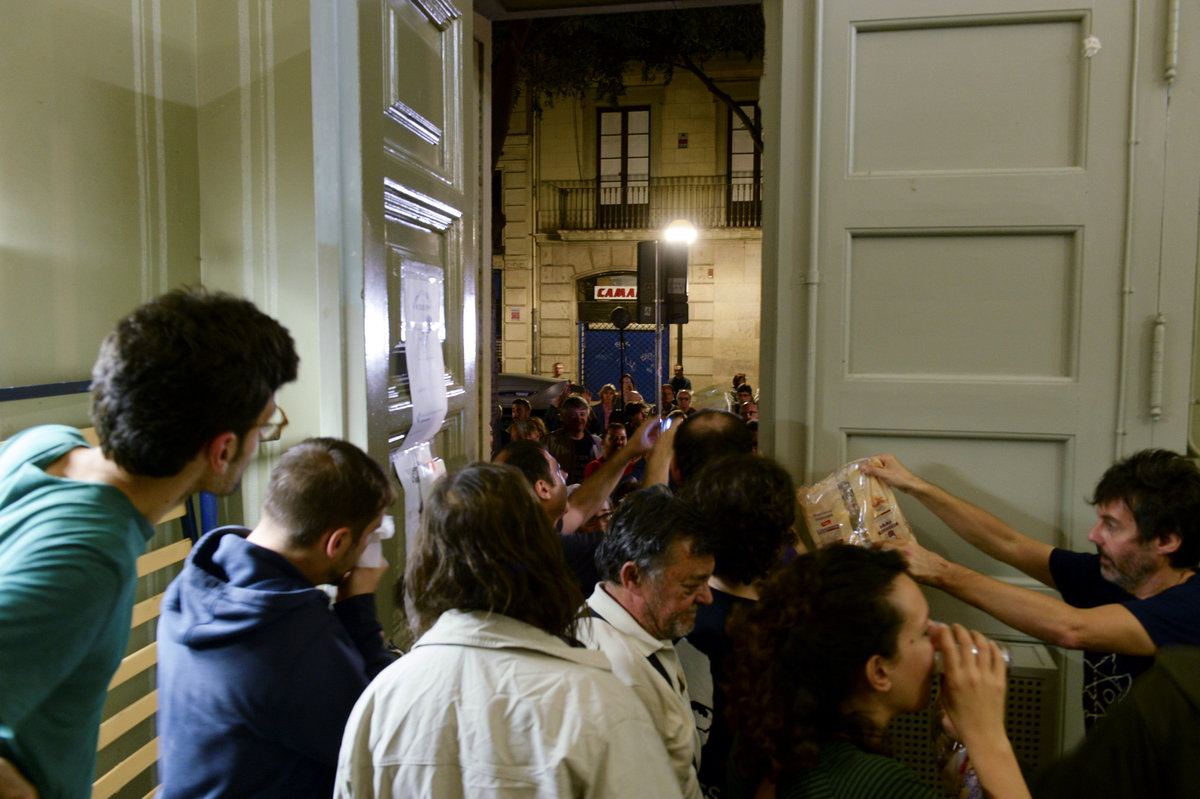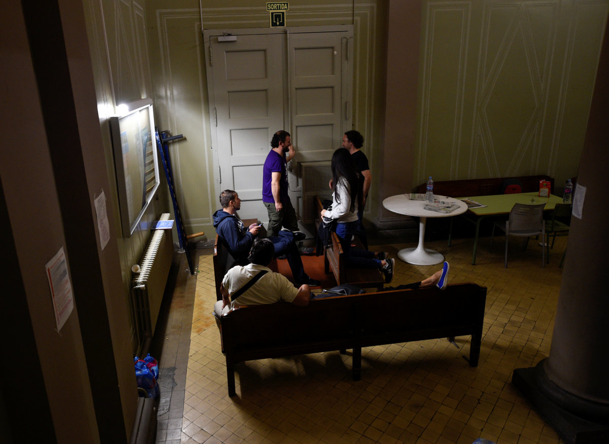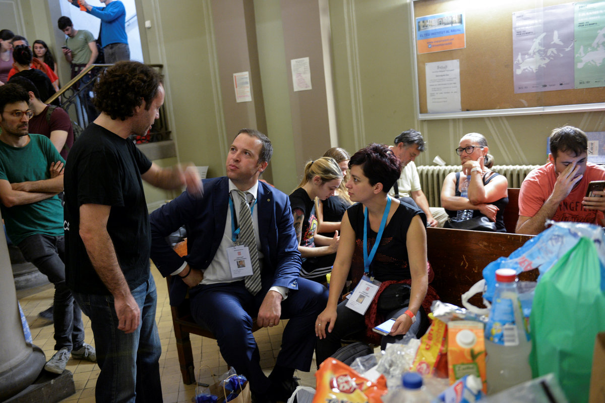 People occupying the Miquel Tarradell high school, which is a polling station for the banned independence referendum, open the door to speak to people outside the school in Barcelona, Spain, October 1, 2017. REUTERS/Eloy AlonsoPeople occupying the Miquel Tarradell high school, which is a polling station for the banned independence referendum, queue for breakfast in Barcelona, Spain, October 1, 2017. REUTERS/Eloy AlonsoA man uses a megaphone as people gather outside industrial school that is a polling station for the banned independence referendum in Barcelona, Spain, October 1, 2017. REUTERS/Yves HermanPeople occupying the Miquel Tarradell high school, which is a polling station for the banned independence referendum, stand by the entrance in Barcelona, Spain, October 1, 2017. REUTERS/Eloy AlonsoPeople stand inside the occupied La Sedeta high school, which is a polling station for the banned independence referendum, in Barcelona, Spain, October 1, 2017. REUTERS/Enrique CalvoPeople move furniture inside an occupied industrial school that is a polling station for the banned independence referendum in Barcelona, Spain, October 1, 2017. REUTERS/Yves HermanPeople sleep outside a polling station for the banned independence referendum in Barcelona, Spain, October 1, 2017. REUTERS/Jon NazcaPeople set up tables inside an occupied industrial school that is a polling station for the banned independence referendum in Barcelona, Spain, October 1, 2017. REUTERS/Yves HermanPeople prepare breakfast inside an occupied industrial school that is a polling station for the banned independence referendum in Barcelona, Spain, October 1, 2017. REUTERS/Yves HermanA tractor is parked blocking the entrance of a polling station for the banned independence referendum in Sant Julia de Ramis, Spain, October 1, 2017. REUTERS/Juan MedinaA woman talks while charging her phone inside the Miquel Tarradell high school which is a polling station for the banned independence referendum in Barcelona, Spain, October 1, 2017. REUTERS/Eloy AlonsoPeople sleep in a courtyard near the entrance of the Escola L'Univers, a school which is to be used as one of the polling stations for the banned independence referendum in Barcelona, Spain, October 1, 2017. REUTERS/Susana VeraPeople arrive at the Municipal Sport Center, a polling station for the banned independence referendum, in Sant Julia de Ramis, Spain, October 1, 2017. REUTERS/Juan MedinaPeople sleep in front of the entrance to a polling station for the banned independence referendum in El Masnou, Spain, October 1, 2017. REUTERS/Albert GeaParents and citizens camp out at the entrance of the occupied Reina Violant elementary school, one of the designated polling stations, since the night before the banned October 1 independence referendum in Barcelona, Spain, October 1, 2017. REUTERS/Jon Nazca