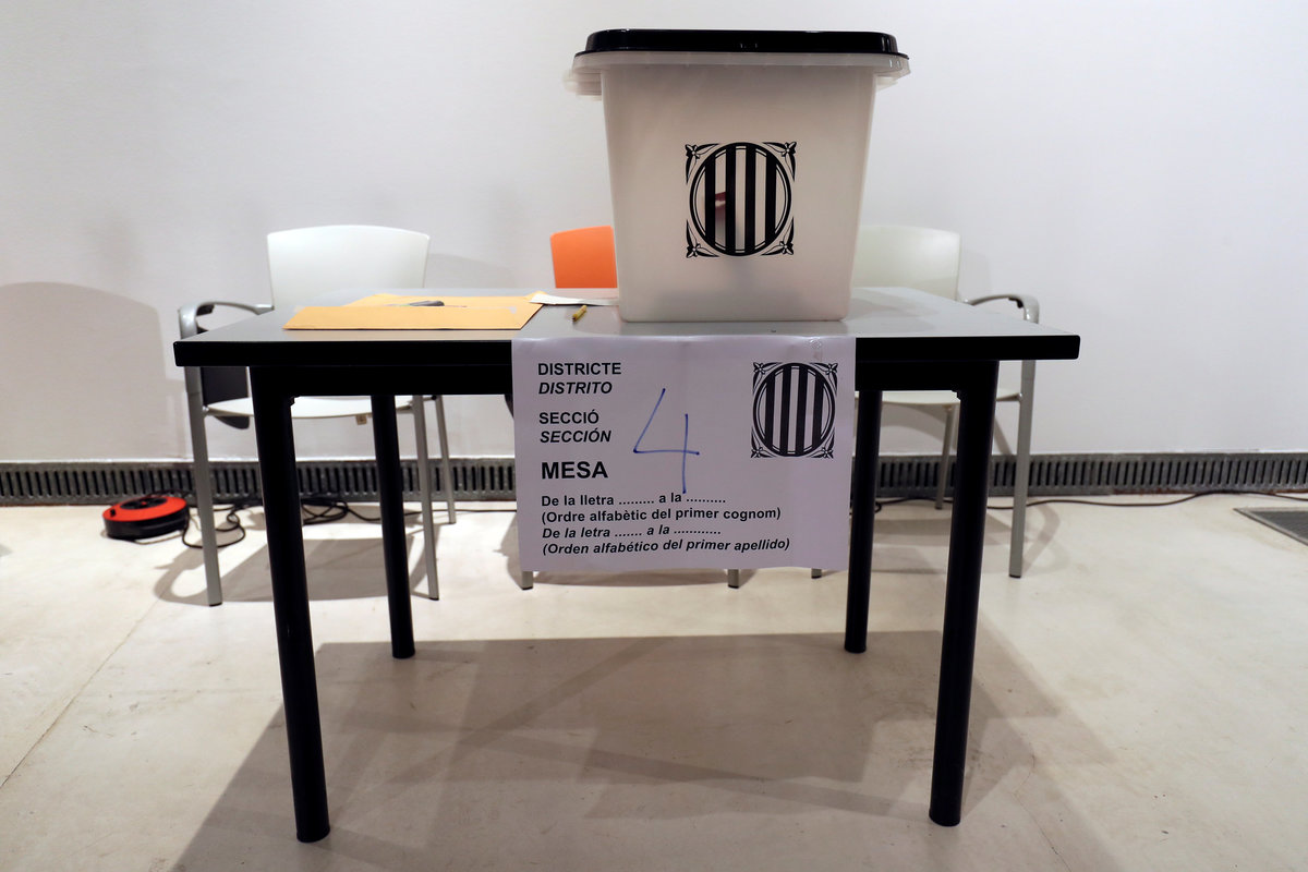 A ballot box is seen at a polling station for the banned independence referendum in Badalona, Spain October 1, 2017. REUTERS/Susana Vera