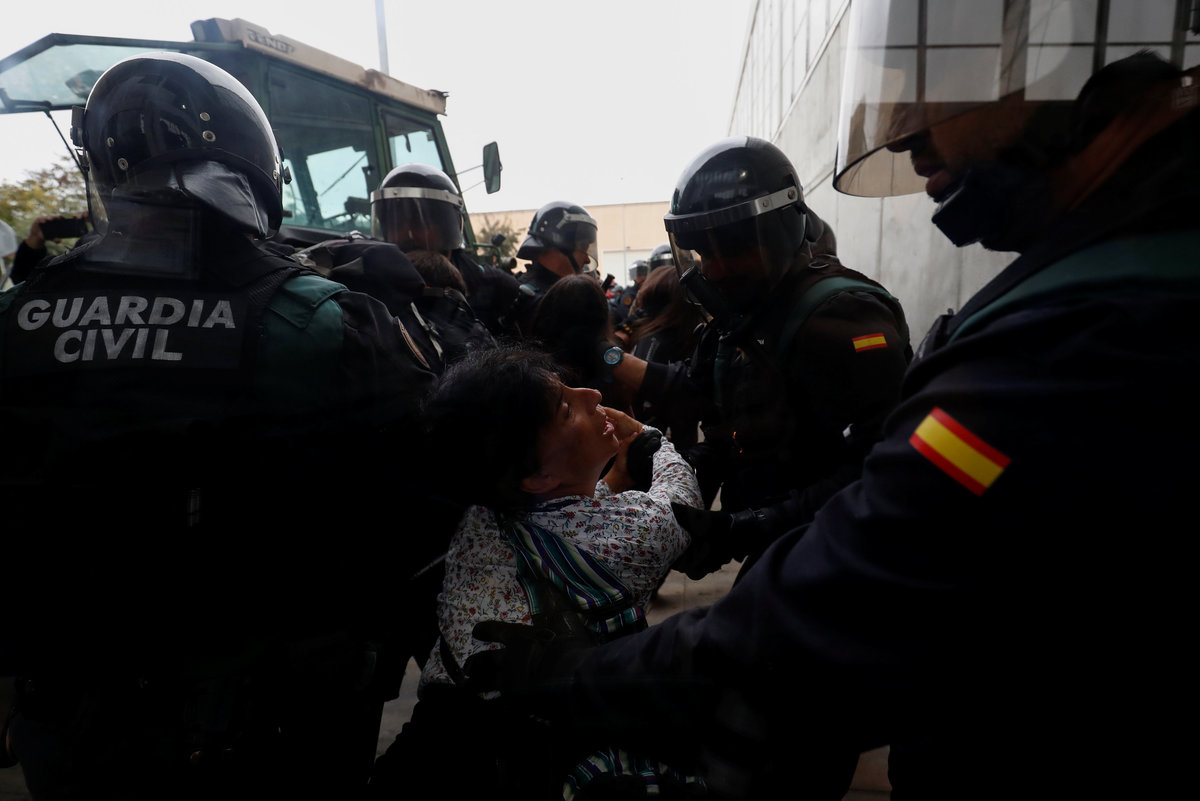 National police sent in to Catalonia for the referendum swept into polling stations, hitting people with batons, firing rubber bullets into crowds and forcibly removing would-be voters from polling stations, some dragged away by their hair.