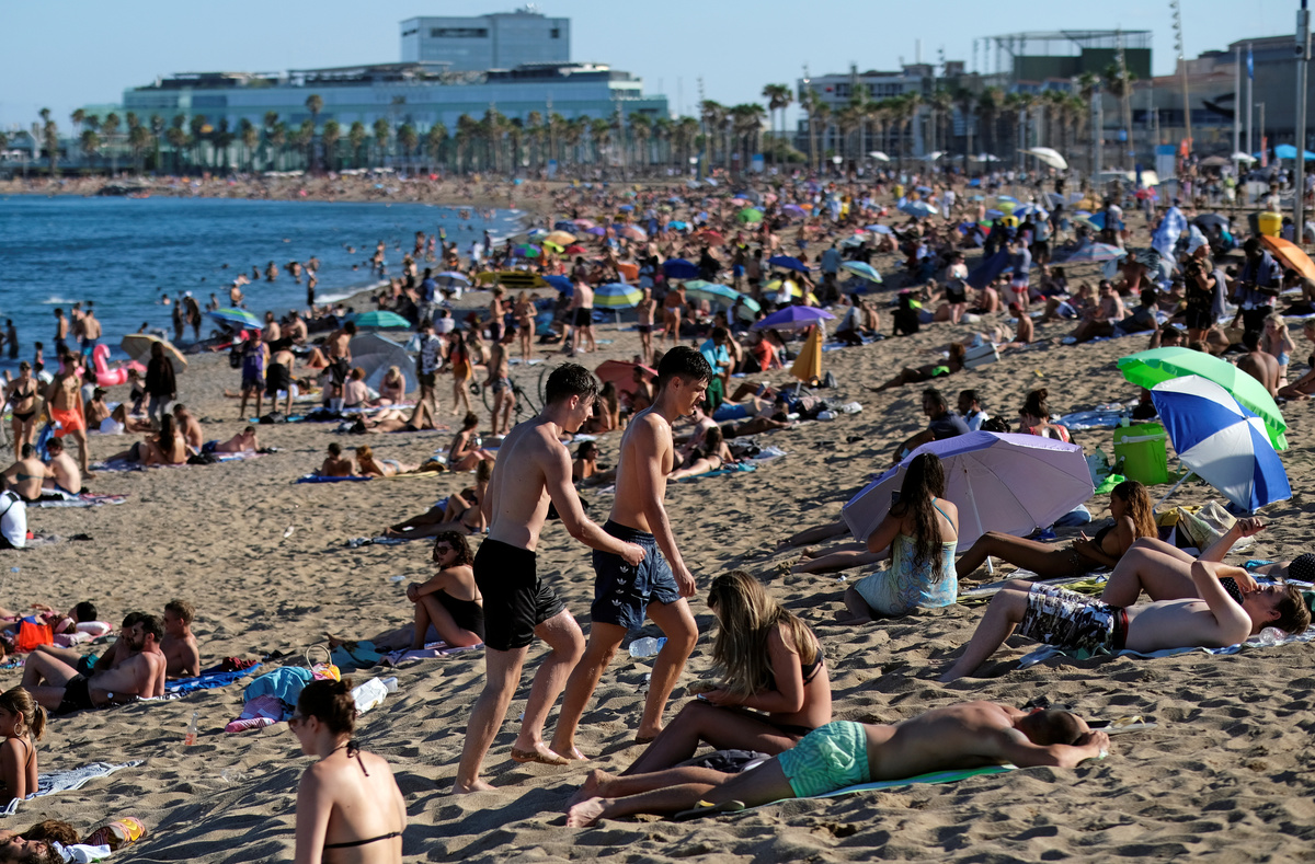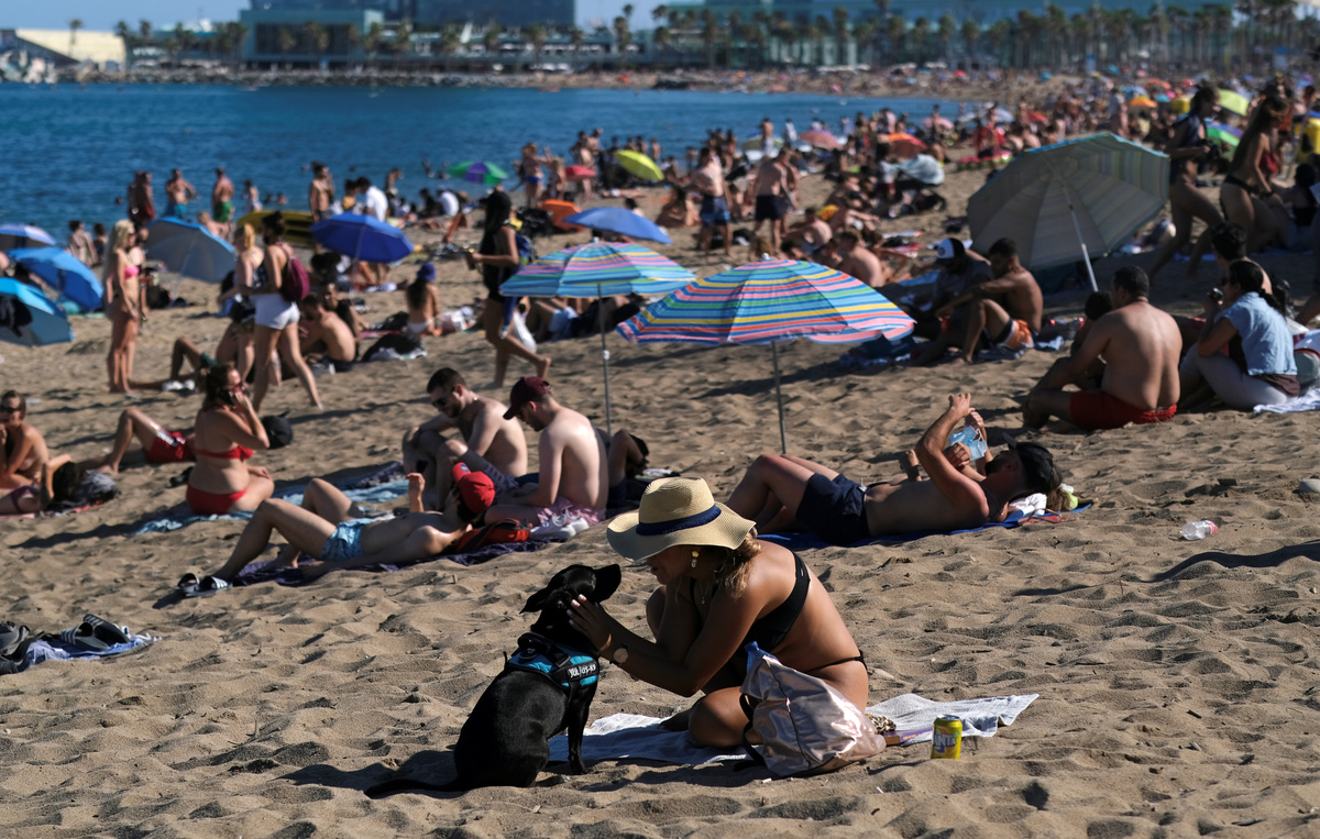 People sunbathed and played in the sea along Barcelona's beaches on Sunday, ignoring pleas from Catalan authorities for area residents to stay at home as coronavirus cases continued to rise in one of Spain's worst-hit regions.