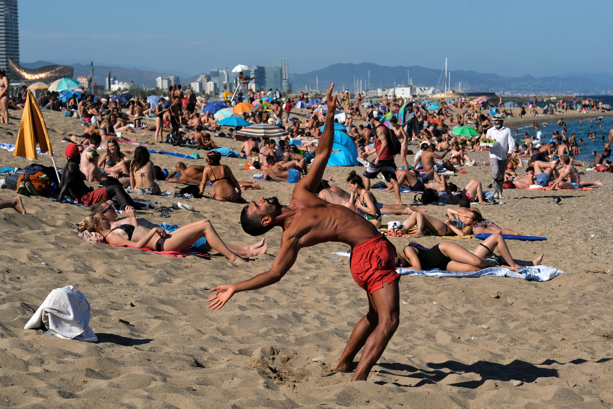"Staying at home in the summer is stifling and stressful," said Felipe, when asked why he had come to the beach despite the advice.