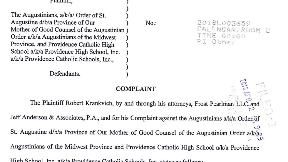 The Rev. Anthony Pizzo, who’s now in charge of Chicago-area Augustinians but wasn’t at the time of those allegations, also was deposed for the lawsuit. Pizzo was asked by Krankvich’s lawyer Marc Pearlman what was done in response to the letter.