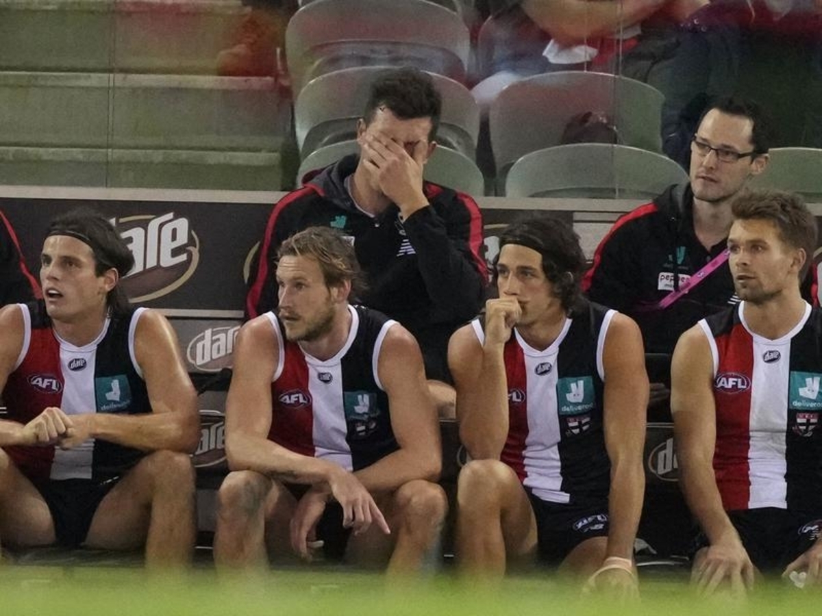 Adding to St Kilda's pain was a foot injury to Rowan Marshall, with the important ruckman distraught after being subbed off for Ben Long in the third quarter.