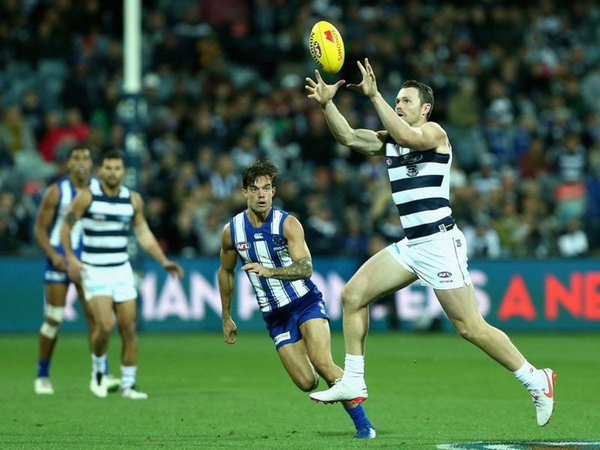 Two third-quarter goals to Menegola helped Geelong put the Kangaroos at arm's length before they kicked away late for a more flattering final margin.