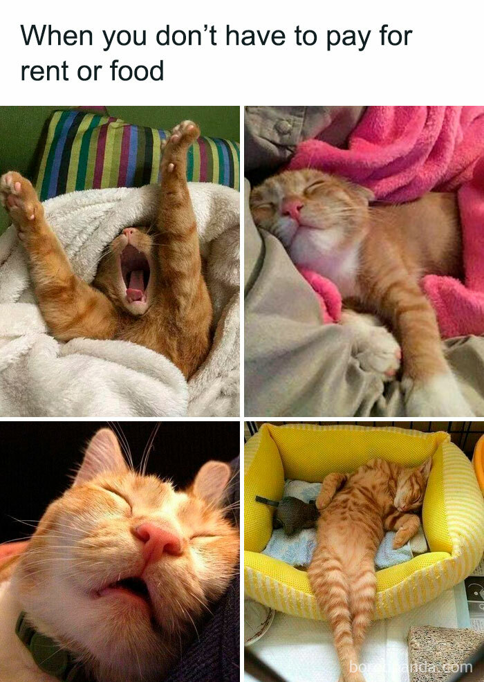 These animals are also perfect for memes because you can quite easily take a photo and add a relatable caption on top, whether it’s related to food, sleep, work, relationships, or something else entirely.