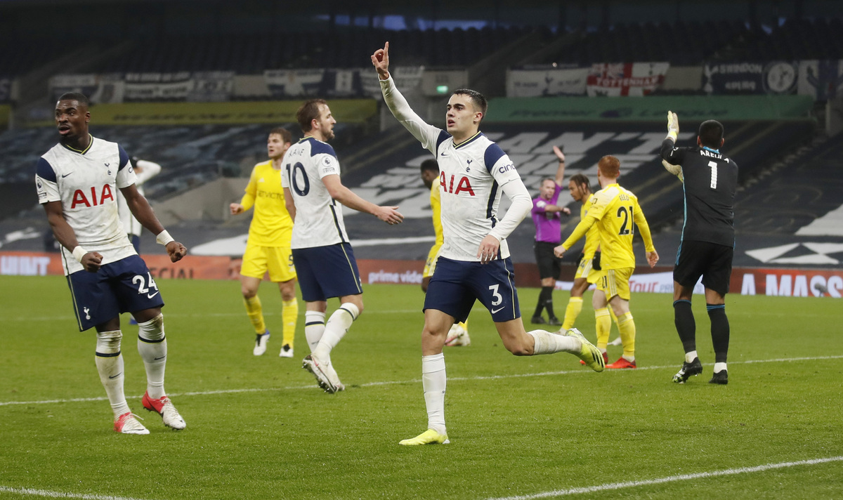 However, it was Spurs who took the lead in the 25th minute when a long ball from Pierre-Emile Hojbjerg found a surging Sergio Reguilon down the left. The Spaniard put in a perfectly weighted cross which Harry Kane dived to head in for his 11th league goal of the season.