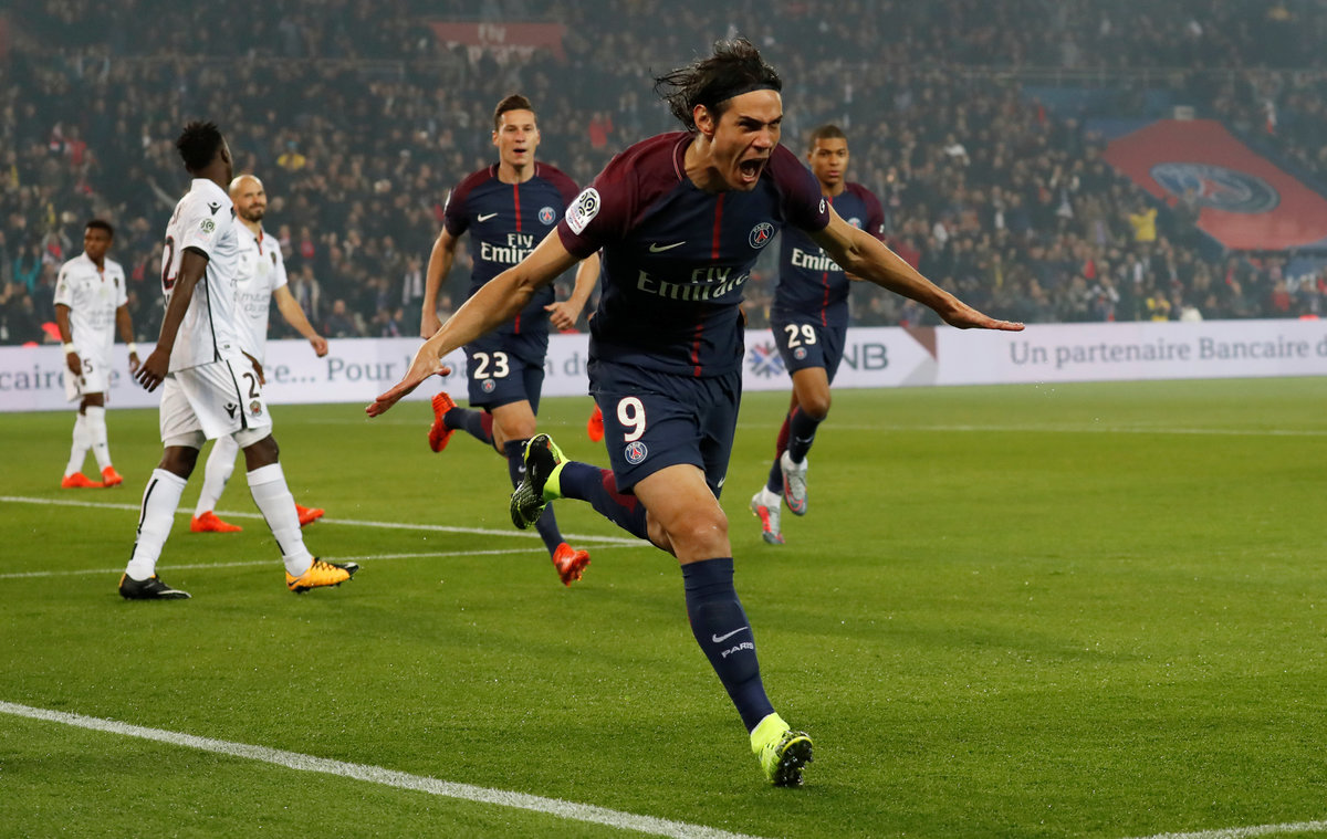 PARIS (Reuters) - Paris St Germain went a provisional seven points clear at the top of Ligue 1 after Edinson Cavani's first-half double and a Dante own goal after the break secured a 3-0 home win over Nice in an entertaining clash on Friday.