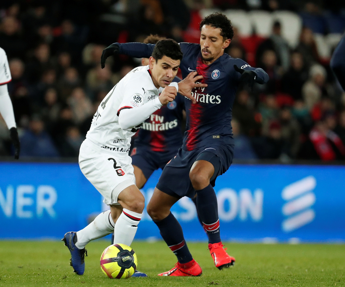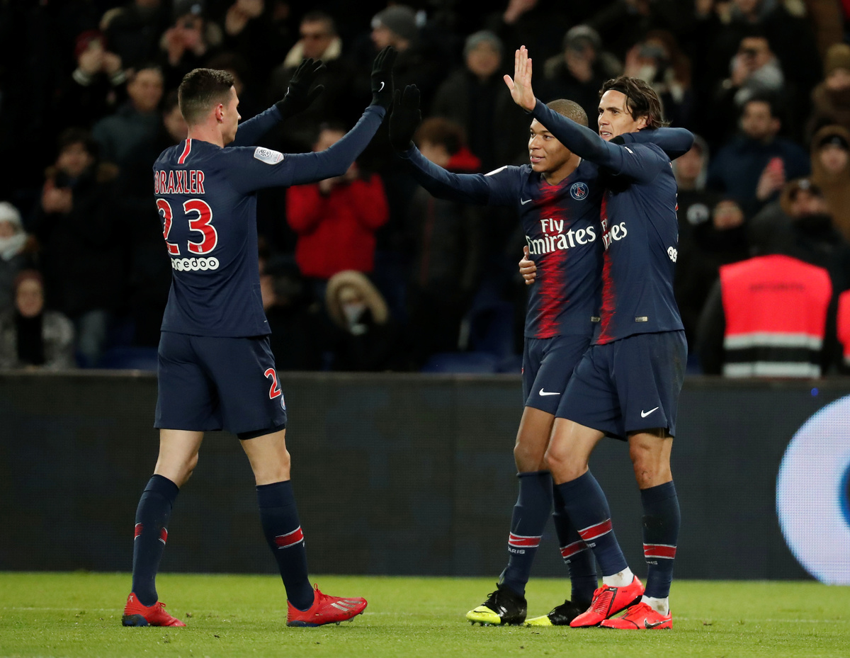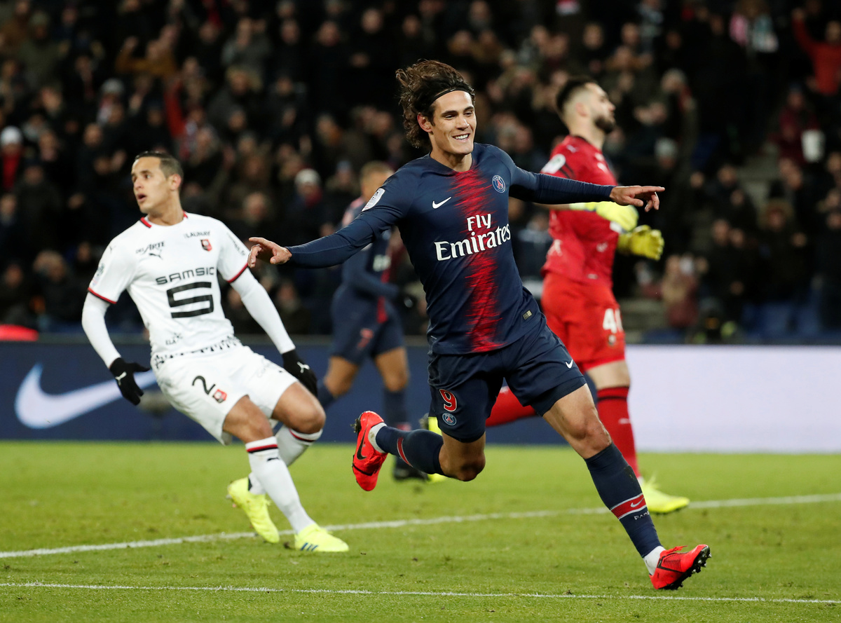 PARIS (Reuters) - Edinson Cavani struck twice as Paris St Germain continued their march towards the Ligue 1 title with a 4-1 home thrashing of Stade Rennais on Sunday.