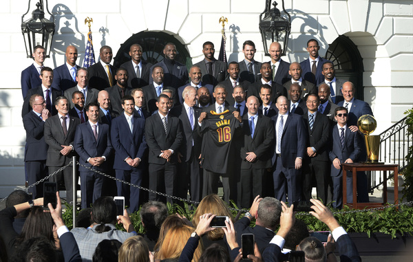 Cavs players met some veterans and played basketball on the White House court after the ceremony. They also toured the White House Thursday and visited with Attorney General Loretta Lynch to discuss steps they're taking to bridge the divide between police and the community.