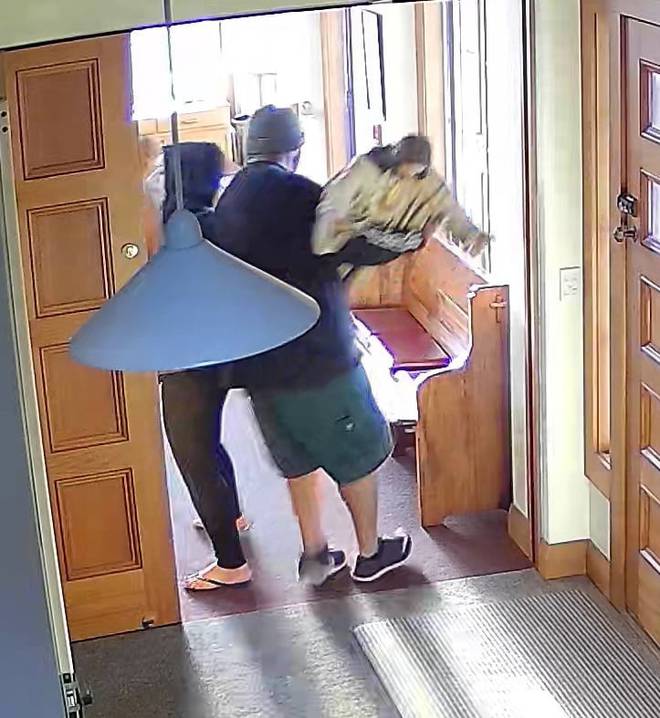 Police are investigating after CCTV footage shows a couple allegedly stealing a statue of Jesus from an Auckland chapel this morning.