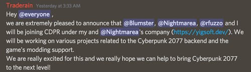 Traderain, one of the previously mentioned new hires, made the announcement in the Cyberpunk 2077 modding Discord channel the other night. The four of them are high-profile figures in the modding community, especially when it comes to RED engine games — The Witcher 3: Wild Hunt and Cyberpunk 2077, specifically. Wolvenkit, an open-source project that provides users with a unified modding toolset for both of these games is the crown jewel in the group’s young developmental career(s).