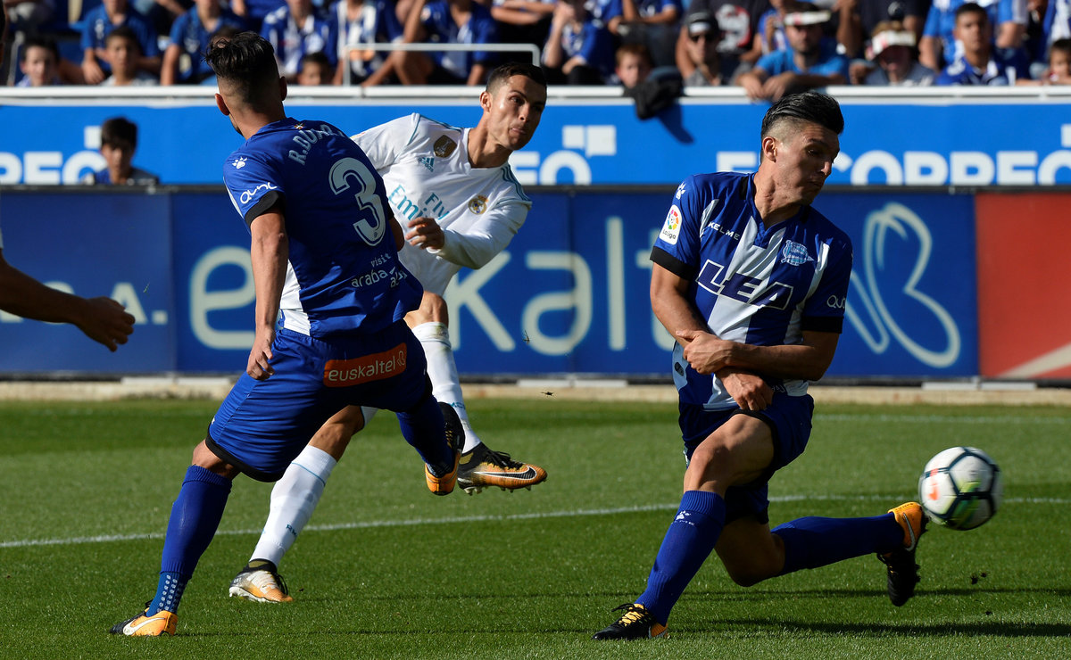 After the restart there were chances at both ends as Cristiano Ronaldo –- still without a Liga goal this season -– and Alaves substitute Alfonso Pedraza both struck the woodwork twice, while Sergio Ramos fired over an open goal after another Pacheco error as Real struggled to put the game to bed.