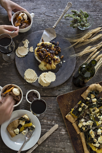 Kalen Morgenstern has hosted many Friendsgivings and says she likes to divert from traditional Thanksgiving menu items. Cherries, pecans and sage make this pretty fall appetizer suitable for December holiday gatherings as well. Serve with crackers or toasted baguette slices.