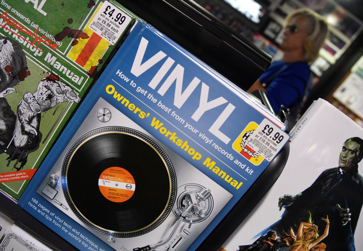 A shopper passes a book about vinyl music at an HMV music store in London, Britain, July 20, 2018. REUTERS/Toby Melville