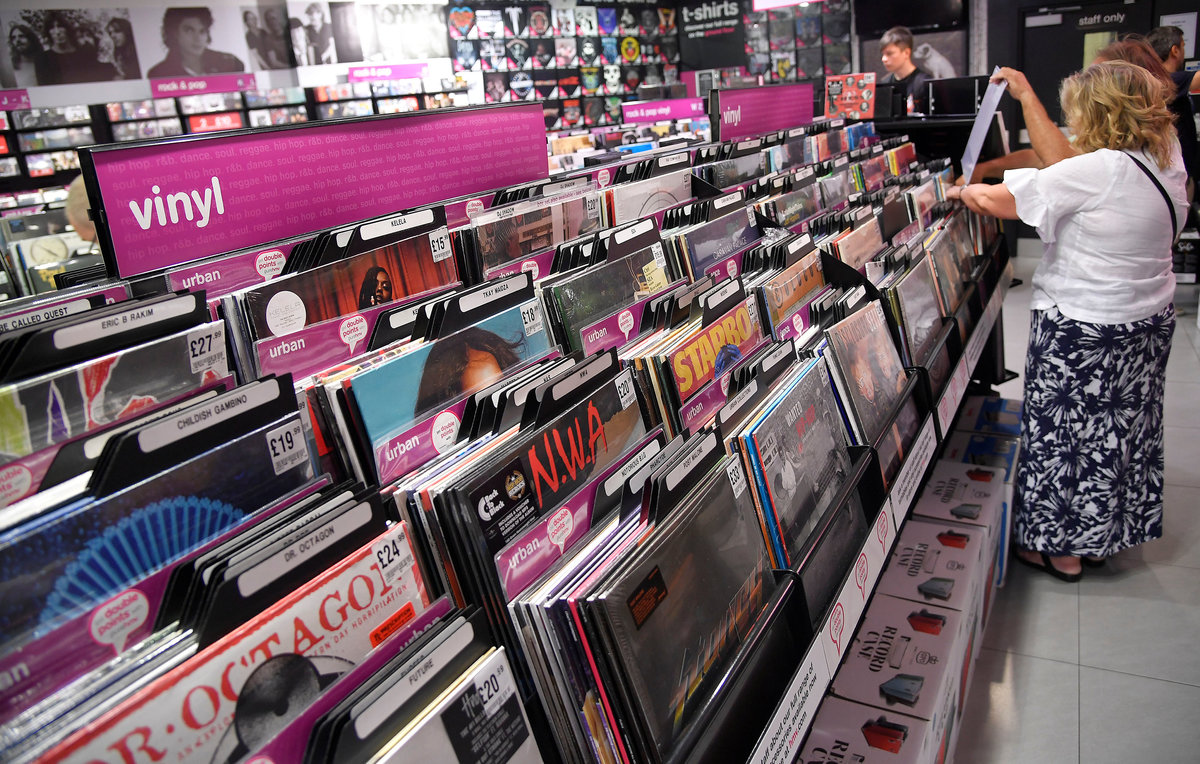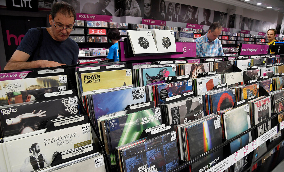 A shopper wearing a music tour t-shirt browses record albums at an HMV music store in London, Britain, July 20, 2018. REUTERS/Toby MelvilleA shopper browses record albums at an HMV music store in London, Britain, July 20, 2018. REUTERS/Toby MelvilleA shopper browses record albums at an HMV music store in London, Britain, July 20, 2018. REUTERS/Toby MelvilleShoppers browse record albums at an HMV music store in London, Britain, July 20, 2018. REUTERS/Toby MelvilleFiling index labels for bands are seen amongst record albums at an HMV music store in London, Britain, July 20, 2018. REUTERS/Toby MelvilleShoppers browse record albums at an HMV music store in London, Britain, July 20, 2018. REUTERS/Toby MelvilleA display of Beatles albums on different formats are seen at an HMV music store in London, Britain, July 20, 2018. REUTERS/Toby MelvilleA shopper browses record albums at an HMV music store in London, Britain, July 20, 2018. REUTERS/Toby MelvilleRacks of reissued vinyl record albums are seen at an HMV music store in London, Britain, July 20, 2018. REUTERS/Toby Melville