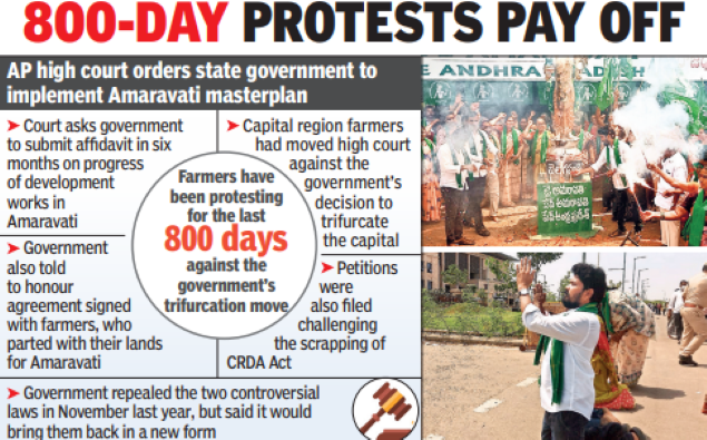 The farmers of the 29 villages, who had given away their land for the capital, burst crackers and distributed sweets. They held victory marches in the villages shouting 'Jai Amaravati' slogans. A few farmers reached the high court and saluted the court buildings. "It is a victory for our struggle. It is a victory of each and every farmer of the 29 villages in the capital city area," said Siva Reddy, Amaravati JAC chairman.