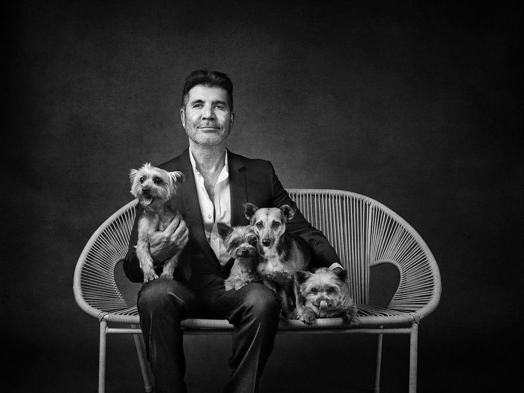 Cowell sat for the photographer with his four Yorkshire terriers, Squiddly, Diddly, Freddy and Daisy.