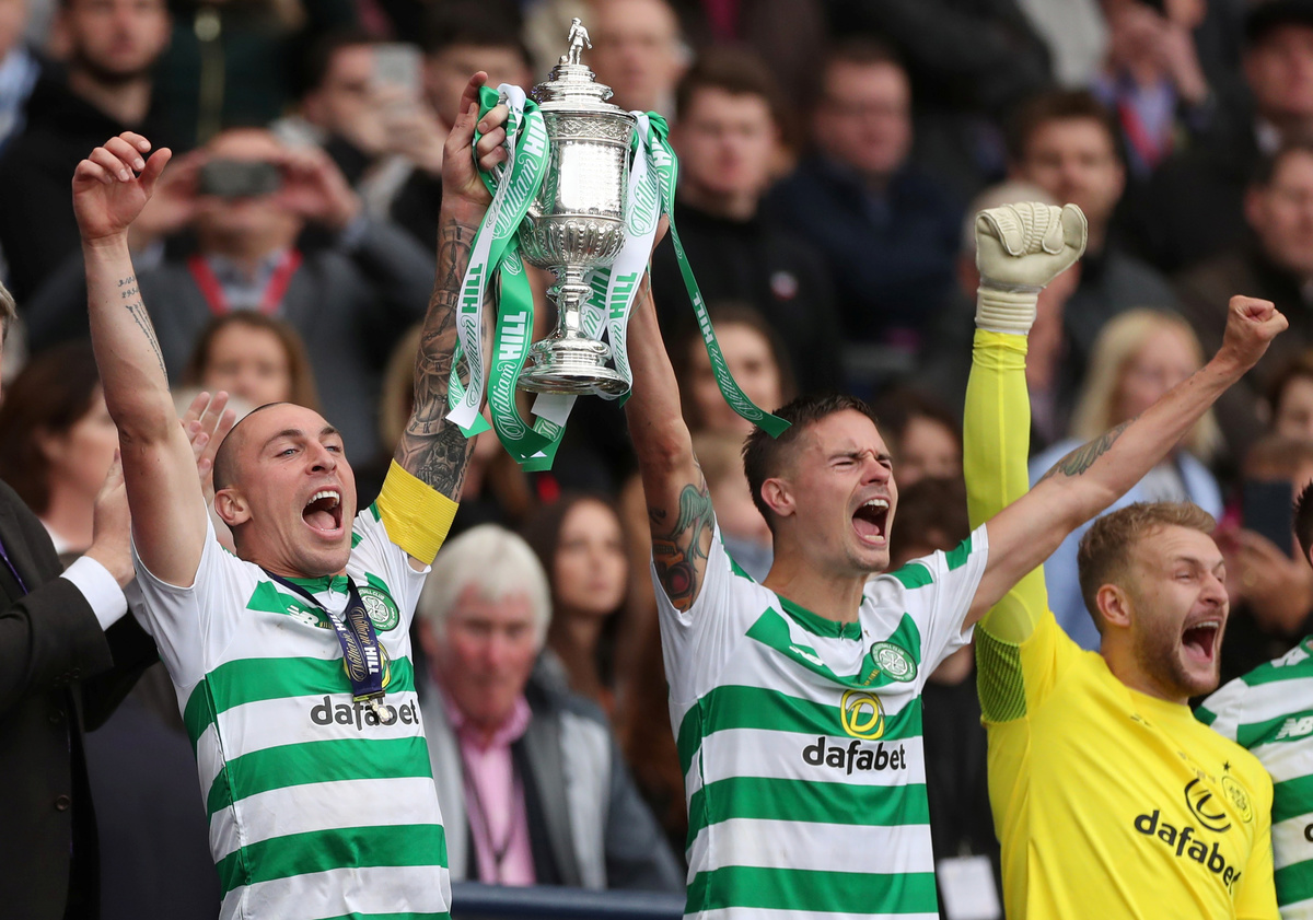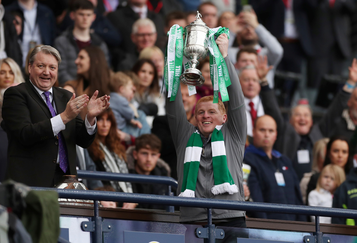 Soccer Football - Scottish Cup Final - Heart of Midlothian v Celtic - Hampden Park, Glasgow, Britain - May 25, 2019 Celtic manager Neil Lennon celebrates with the trophy after winning the Scottish Cup Final Action Images via Reuters/Lee SmithSoccer Football - Scottish Cup Final - Heart of Midlothian v Celtic - Hampden Park, Glasgow, Britain - May 25, 2019 Celtic's Scott Brown celebrates with his medal after winning the Scottish Cup Final Action Images via Reuters/Lee SmithSoccer Football - Scottish Cup Final - Heart of Midlothian v Celtic - Hampden Park, Glasgow, Britain - May 25, 2019 Celtic's Odsonne Edouard celebrates scoring their second goal REUTERS/Russell CheyneSoccer Football - Scottish Cup Final - Heart of Midlothian v Celtic - Hampden Park, Glasgow, Britain - May 25, 2019 Celtic's Odsonne Edouard scores their second goal REUTERS/Russell CheyneSoccer Football - Scottish Cup Final - Heart of Midlothian v Celtic - Hampden Park, Glasgow, Britain - May 25, 2019 Hearts' Peter Haring in action with Celtic's Scott Sinclair REUTERS/Russell CheyneSoccer Football - Scottish Cup Final - Heart of Midlothian v Celtic - Hampden Park, Glasgow, Britain - May 25, 2019 Celtic's James Forrest shoots at goal REUTERS/Russell CheyneSoccer Football - Scottish Cup Final - Heart of Midlothian v Celtic - Hampden Park, Glasgow, Britain - May 25, 2019 Celtic's Scott Brown in action with Hearts' Jake Mulraney REUTERS/Russell CheyneSoccer Football - Scottish Cup Final - Heart of Midlothian v Celtic - Hampden Park, Glasgow, Britain - May 25, 2019 Hearts' Steven MacLean in action with Celtic's Kristoffer Ajer Action Images via Reuters/Lee SmithSoccer Football - Scottish Cup Final - Heart of Midlothian v Celtic - Hampden Park, Glasgow, Britain - May 25, 2019 Celtic's Mikey Johnston in action with Hearts' Michael Smith Action Images via Reuters/Lee SmithSoccer Football - Scottish Cup Final - Heart of Midlothian v Celtic - Hampden Park, Glasgow, Britain - May 25, 2019 Celtic's Odsonne Edouard scores their first goal from the penalty spot Action Images via Reuters/Lee Smith