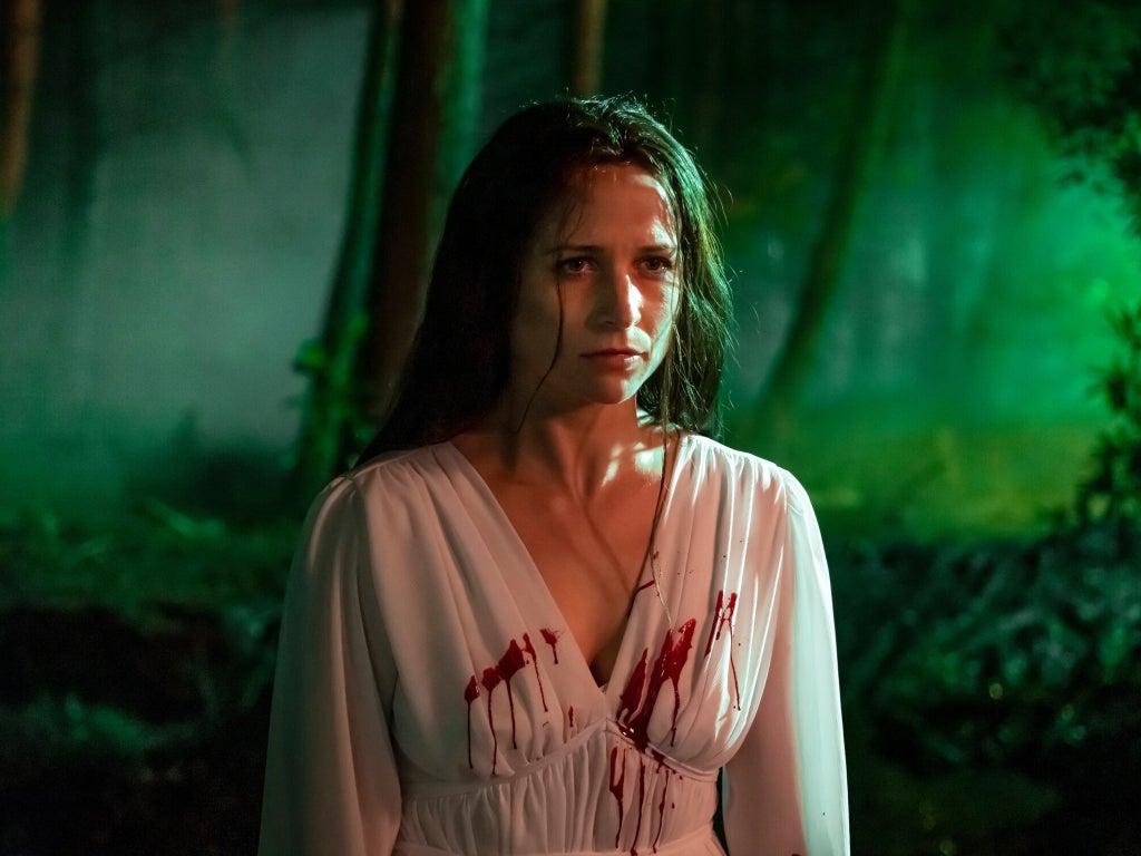 Her Enid is a tricky character to get a handle on. At times the actor – currently onscreen in Channel 4’s Deceit – seems remote in the role, wooden even, but then she gradually shows her hand. Enid is as much an observer of cinema as she is a desperate participant in it. She drifts between roles and personas in her daily life, as if she were one of the fictional women she watches in private screening rooms. There are times when she wants to be the sturdy professional standing defiant in the boys club, a la Melanie Griffith in Working Girl. Elsewhere she is the valiant hero, who sets out to rescue her terrified sibling. In other moments, she is an avenging angel, blood-stained and destructive. Whatever the mode she’s in, she wants to be the girl in the movie. Tragically, she just can’t choose its genre.