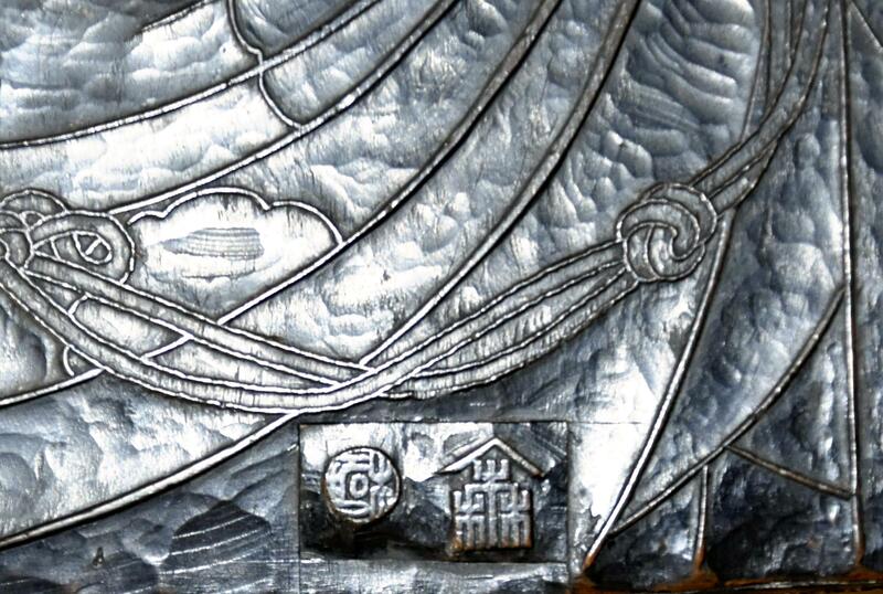 If they approved the draft, they used a seal to mark it with the kanji "kiwame." The engraver then carved the design of the preliminary draft, including the seal, onto a wooden board to create the key block.