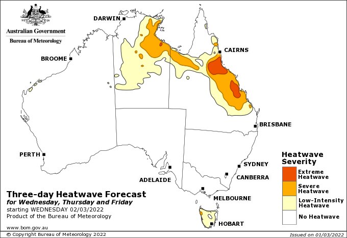 The Bureau of Meteorology said the heatwave warning for Rockhampton extended up to Cairns and beyond, with temperatures as high as 42 degrees Celsius in the Central Highlands.