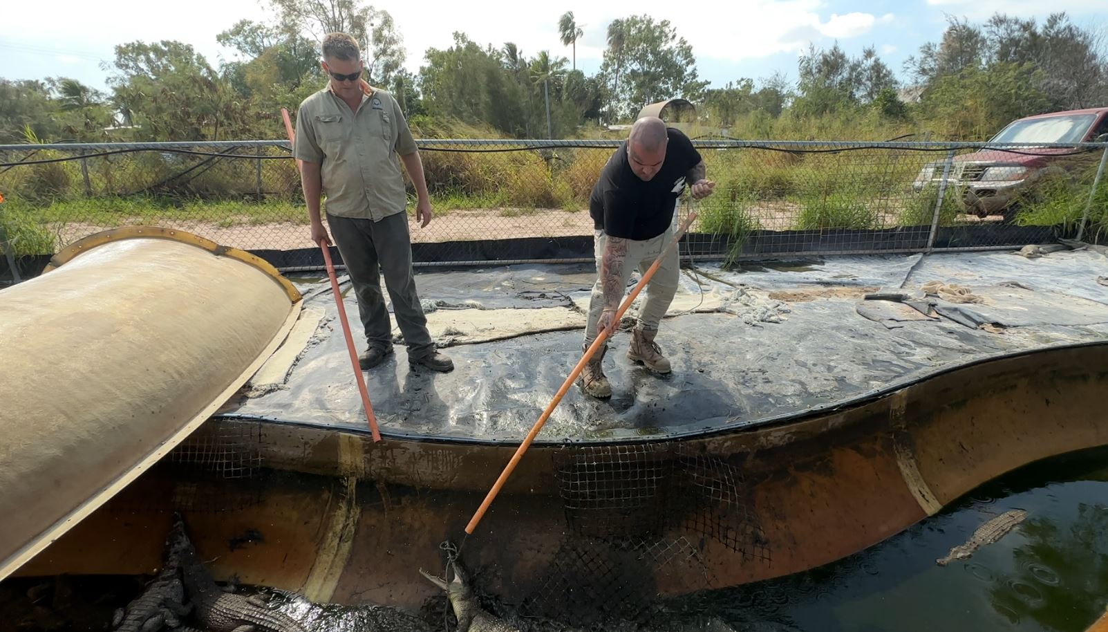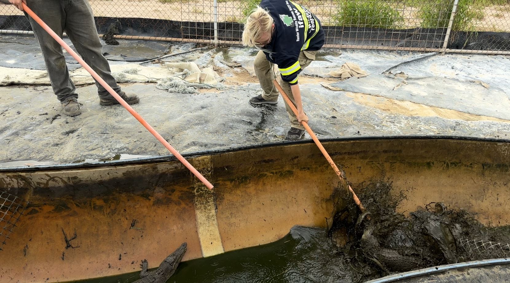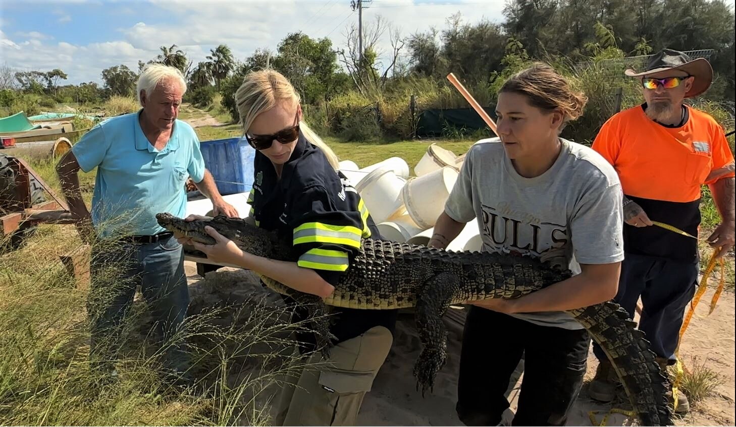 "They've been handling some larger crocodiles … you don't pick them up in your hands. You've got to do with ropes and poles," Mr Lever said.