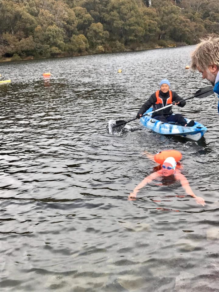 While Ms Symons' support crew set the course up with lane ropes in a pond next to the Thredbo River, the swimmer sat in a warm car, mentally preparing.