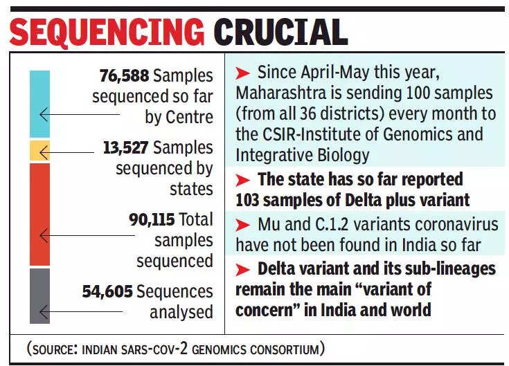 National Centre for Disease Control (NCDC) director Dr Sujeet Singh told TOI that each state should send at least 15 samples a week for genome sequencing, subject to the number of active cases. Maharashtra and Kerala are currently sending the maximum number of samples for genome sequencing.