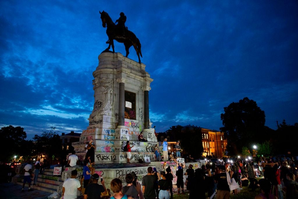 The six-metre high Robert E Lee statue towered above Monument Avenue, in the former capital of the Confederacy, for more than 100 years before it was removed from public display in September, after becoming a focal point for Black Lives Matter protesters.