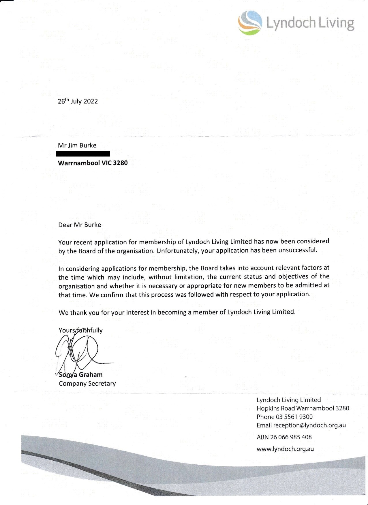 "I am aware of the community’s concerns regarding Lyndoch and have written to the commission to ask for their continued support in working with Lyndoch," Mr Brooks said.