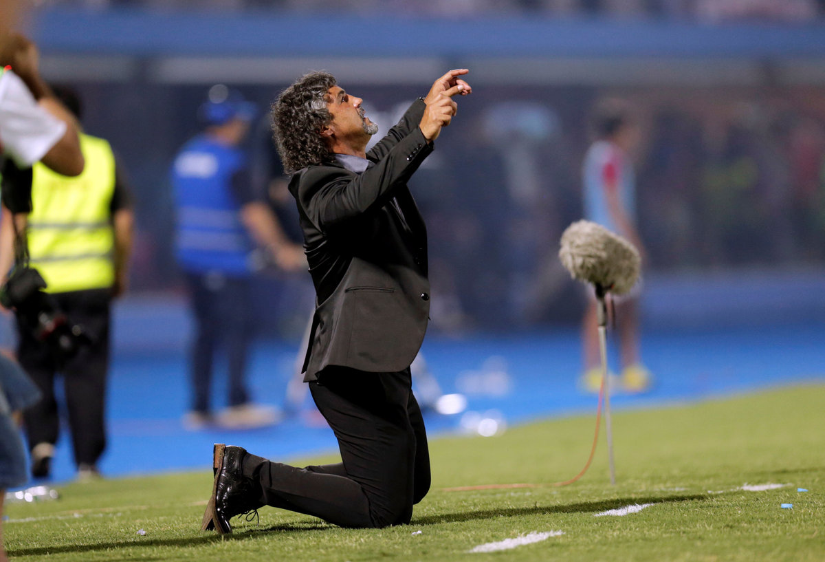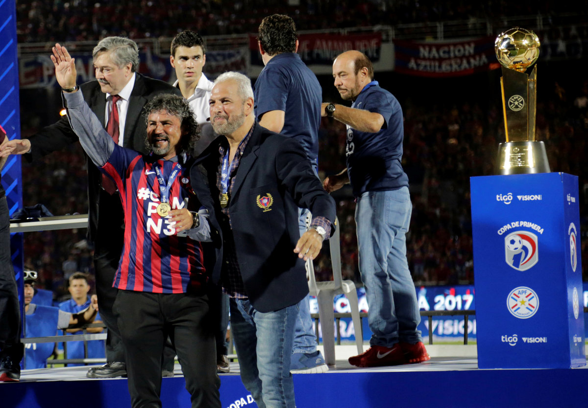 Soccer Football - Paraguayan Championship - Cerro Porteno v Sol de America - General Pablo Rojas Stadium, Asuncion, Paraguay - December 10, 2017. Juan Jose Zapag, president of Cerro Porteno and Cerro Porteno's coach Leonel Alvarez. REUTERS/Jorge AdornoSoccer Football - Paraguayan Championship - Cerro Porteno v Sol de America - General Pablo Rojas Stadium, Asuncion, Paraguay - December 10, 2017. Nelson Haedo Valdez of Cerro Porteno holds up the championship trophy as he celebrates with teammates after their Paraguayan First Division soccer match against Sol de America. REUTERS/Jorge AdornoSoccer Football - Paraguayan Championship - Cerro Porteno v Sol de America - General Pablo Rojas Stadium, Asuncion, Paraguay - December 10, 2017. Diego Churin of Cerro Porteno celebrates his goal. REUTERS/Jorge AdornoSoccer Football - Paraguayan Championship - Cerro Porteno v Sol de America - General Pablo Rojas Stadium, Asuncion, Paraguay - December 10, 2017. Alvaro Pereira of Cerro Porteno holds up the championship trophy as he celebrates with teammates after their Paraguayan First Division soccer match against Sol de America.REUTERS/Jorge Adorno Cerro Porteno's coach Leonel Alvarez (R) celebrates after winning. REUTERS/Jorge AdornoSoccer Football - Paraguayan Championship - Cerro Porteno v Sol de America - General Pablo Rojas Stadium, Asuncion, Paraguay - December 10, 2017. Players of Paraguay's Cerro Porteno celebrate after winning. REUTERS/Jorge AdornoSoccer Football - Paraguayan Championship - Cerro Porteno v Sol de America - General Pablo Rojas Stadium, Asuncion, Paraguay - December 10, 2017. Fans of Paraguay's Cerro Porteno celebrate after winning. REUTERS/Jorge AdornoSoccer Football - Paraguayan Championship - Cerro Porteno v Sol de America - General Pablo Rojas Stadium, Asuncion, Paraguay - December 10, 2017. Fans of Paraguay's Cerro Porteno cheer for their team. REUTERS/Jorge AdornoSoccer Football - Paraguayan Championship - Cerro Porteno v Sol de America - General Pablo Rojas Stadium, Asuncion, Paraguay - December 10, 2017. Cerro Porteno's coach Leonel Alvarez celebrates after winning. REUTERS/Jorge AdornoSoccer Football - Paraguayan Championship - Cerro Porteno v Sol de America - General Pablo Rojas Stadium, Asuncion, Paraguay - December 10, 2017. Spectators watch Javier Toledo (R) of Sol de America celebrate his goal against Cerro Porteno. REUTERS/Jorge AdornoSoccer Football - Paraguayan Championship - Cerro Porteno v Sol de America - General Pablo Rojas Stadium, Asuncion, Paraguay - December 10, 2017. Diego Churin (R) of Cerro Porteno celebrates his goal. REUTERS/Jorge AdornoSoccer Football - Paraguayan Championship - Cerro Porteno v Sol de America - General Pablo Rojas Stadium, Asuncion, Paraguay - December 10, 2017. Diego Churin (R) Cerro Porteno, Wildo Alonso (L) and Adrian Portillo (front) of Sol de America in action. REUTERS/0 AdornoSoccer Football - Paraguayan Championship - Cerro Porteno v Sol de America - General Pablo Rojas Stadium, Asuncion, Paraguay - December 10, 2017. Diego Churin of Cerro Porteno scores a penalty goal against goalkeeper Gerardo Ortiz of Sol de America. REUTERS/Jorge AdornoSoccer Football - Paraguayan Championship - Cerro Porteno v Sol de America - General Pablo Rojas Stadium, Asuncion, Paraguay - December 10, 2017. Cerro Porteno's coach Leonel Alvarez (R) celebrates after winning. REUTERS/Jorge AdornoSoccer Football - Paraguayan Championship - Cerro Porteno v Sol de America - General Pablo Rojas Stadium, Asuncion, Paraguay - December 10, 2017. Paraguay's Cerro Porteno pose for a team photo before the match. REUTERS/Jorge Adorno