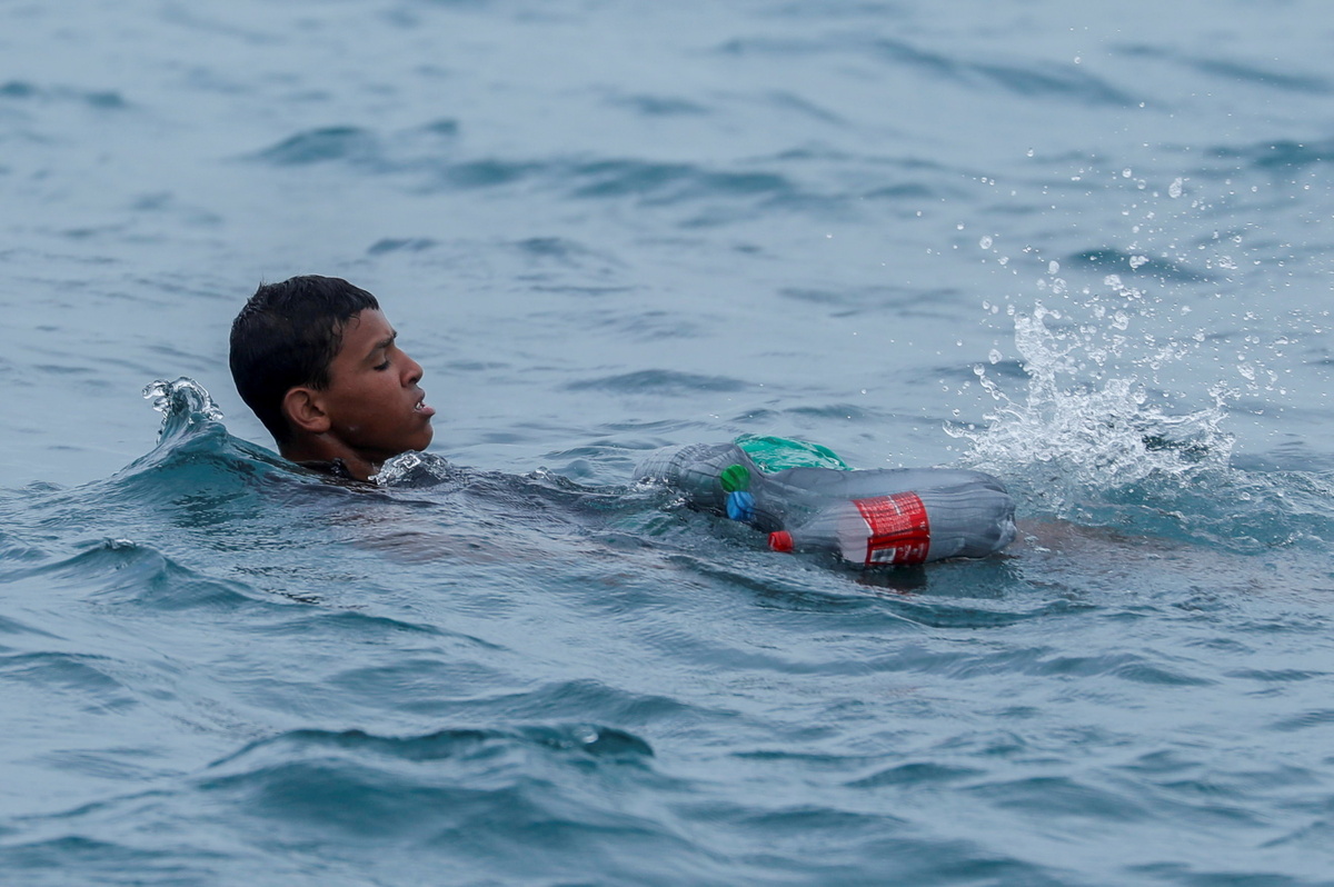 Footage of the boy, who swam with empty bottles attached to himself and stuffed in his clothes, drew international media attention. On arrival in Ceuta, the boy is seen in the Reuters footage being led away by soldiers towards the security zone between the two countries.