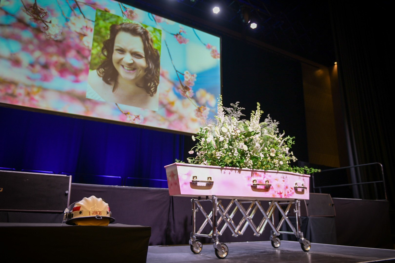 More than 600 family, friends and emergency services colleagues, including many in uniform, attended her funeral at the Adelaide Entertainment Centre where her husband, parents, brothers, daughters and colleagues paid tribute to Ms Hincks.